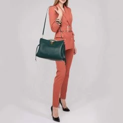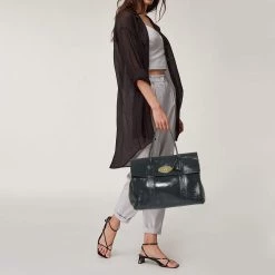 Mulberry Green Grained Leather Iris Top Handle Bag For Women