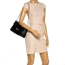 Mulberry Black/Burgundy Snakeskin Embossed Leather Delphie Duo Flap Shoulder Bag For Women