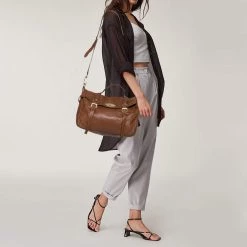 Mulberry Brown Leather Oversized Alexa Top Handle Bag For Women