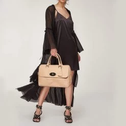 Mulberry Beige Leather Small Seaton Top Handle Bag For Women