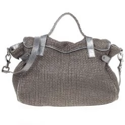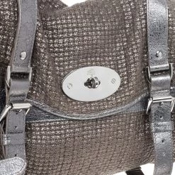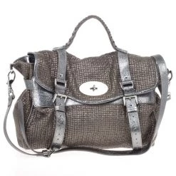 Named after the beautiful model, Alexa Chung, this bag by Mulberry is infused with her London Chic style. Crafted from tweed with metallic leather trim, this bag straps and enclosed with oval shaped silver tone magnetic closure and woven handle. The interior is lined with textile and has patch and zipper pockets with Mulberry leather tag and charm.