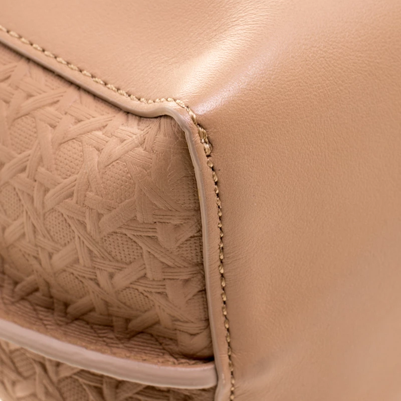 Mulberry brings you this handy tote that will dutifully hold all your necessities. It has been crafted from beige woven embossed leather and features dual handles. The leather lined interior is spacious and houses a zip pocket. Blossom Shopper tote is your ideal everyday bag.