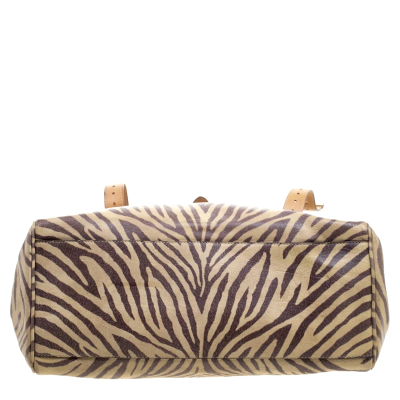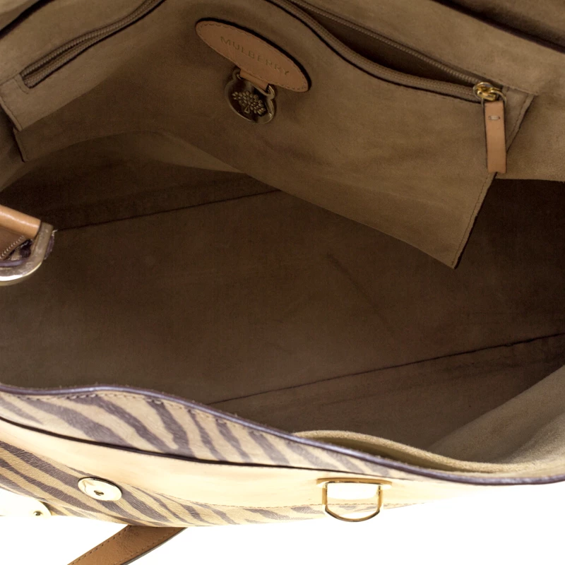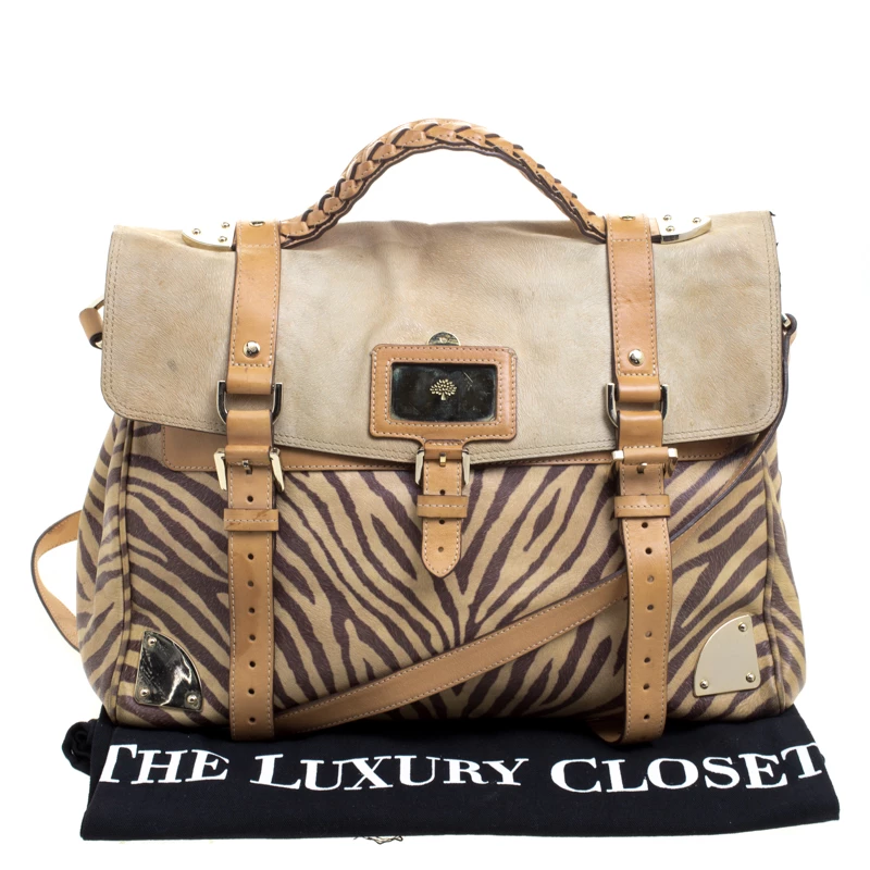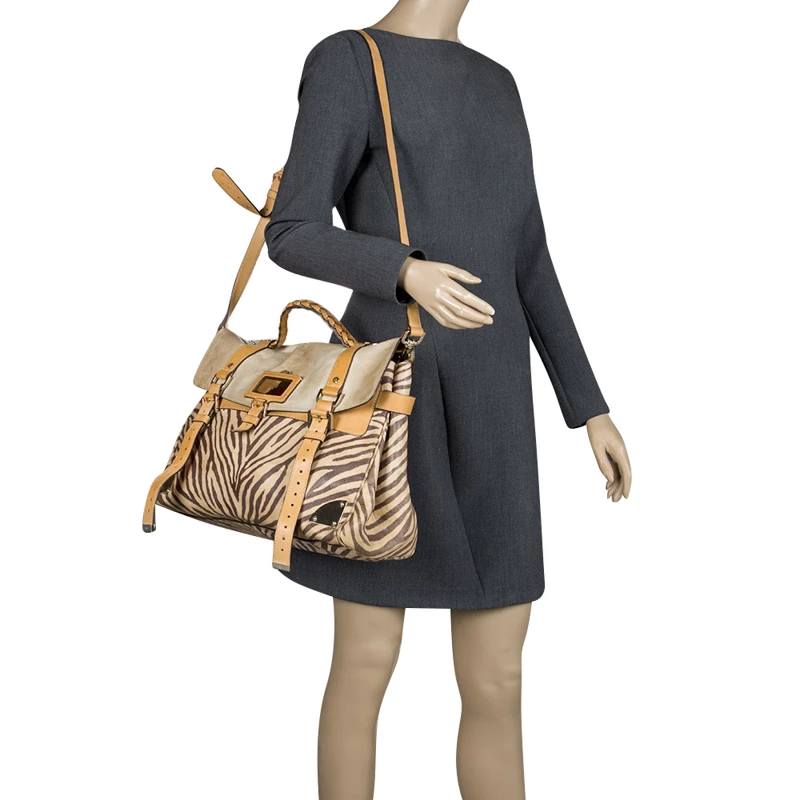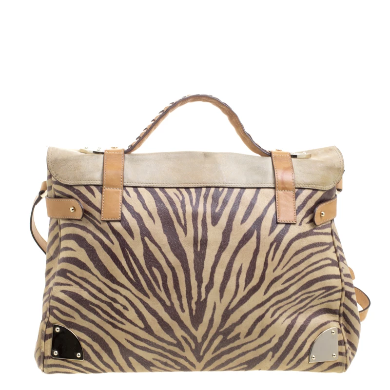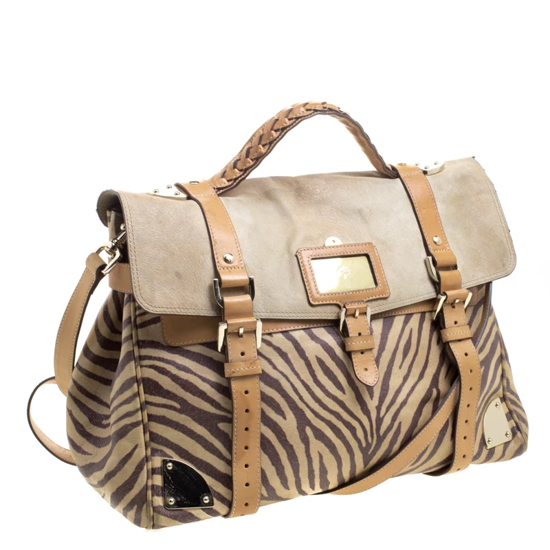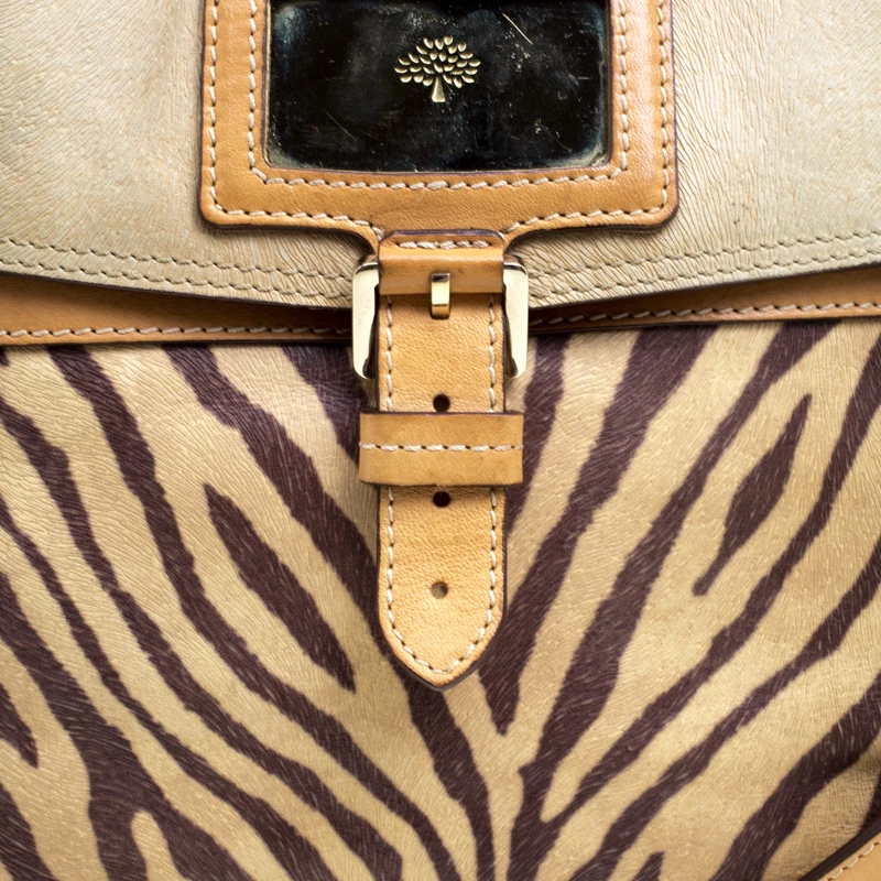 Satchels like these are hard to come by, so quickly grab one when you can! Crafted from leather, this Mulberry bag is equipped with front buckle detailing, a detachable shoulder strap and a braided top handle. The zebra print bag opens to a well sized suede lined interior that houses a zip pocket to keep your essentials safe. Travel Day satchel is an ideal everyday bag.