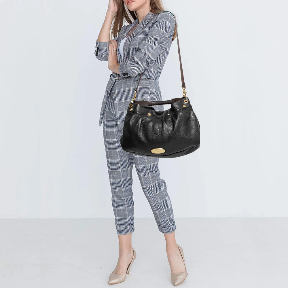 Stunning to look at and durable enough to accompany you wherever you go, this Mulberry hobo is a joy to own! This Mitzy bag is crafted from pebbled leather and styled with a top handle, a shoulder strap, and a perfectly sized fabric interior to carry your belongings.