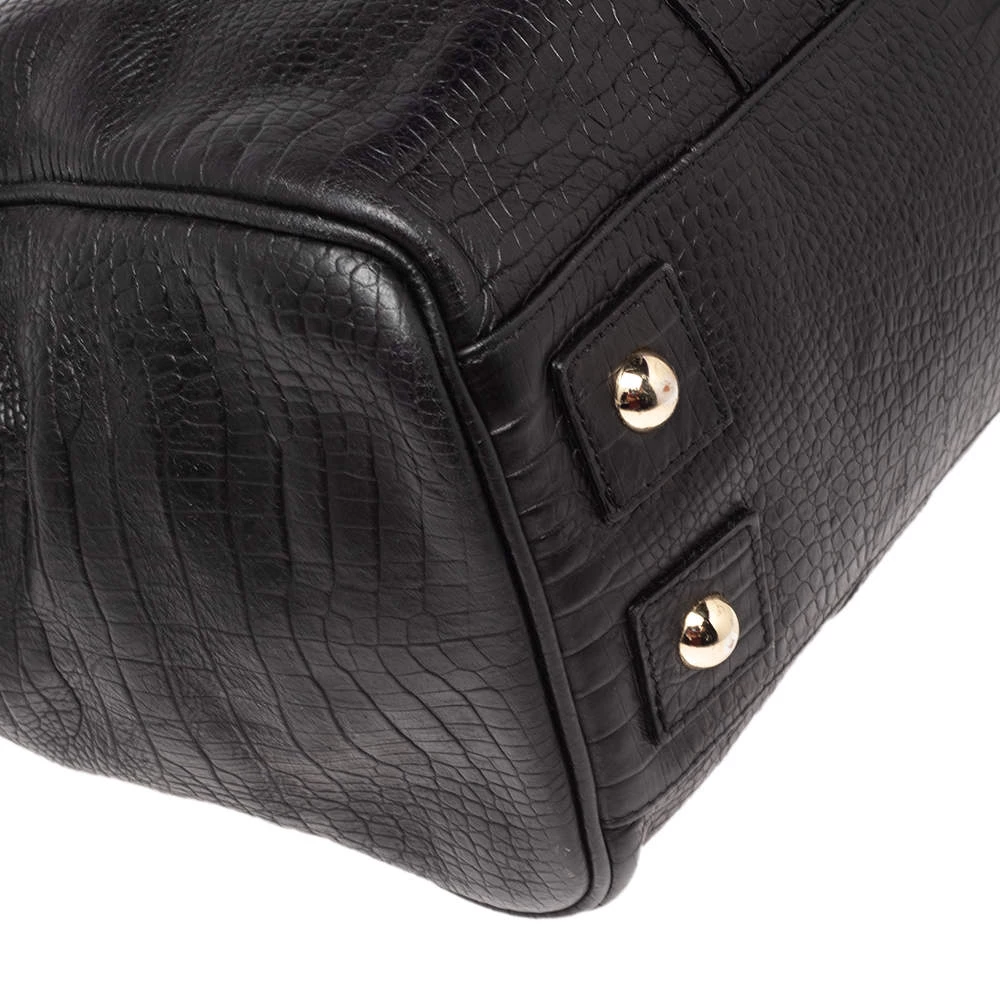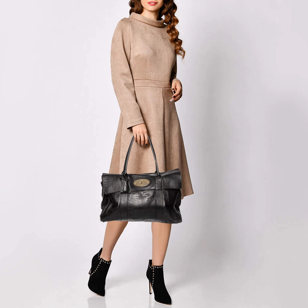 The Bayswater is one of the most well-known collections from Mulberry and is a must-buy. Crafted from black croc-embossed leather, the bag is equipped with two handles and a turn lock on the flap. It has ample space for your belongings and is lined with suede. This satchel is ideal for everyday use.