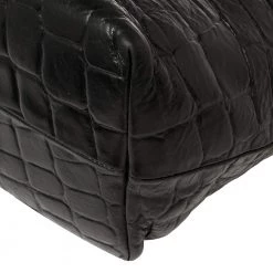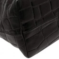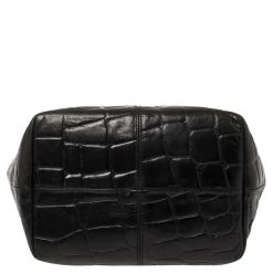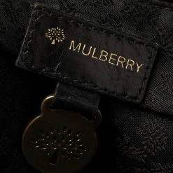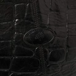 Startlingly sleek and sophisticated, this Mulberry tote will aid you in carrying essentials and being stylish all at the same time. Crafted from croc-embossed leather, this black creation carries dual handles, logo detailing in the front, gold-tone hardware and a fabric interior.