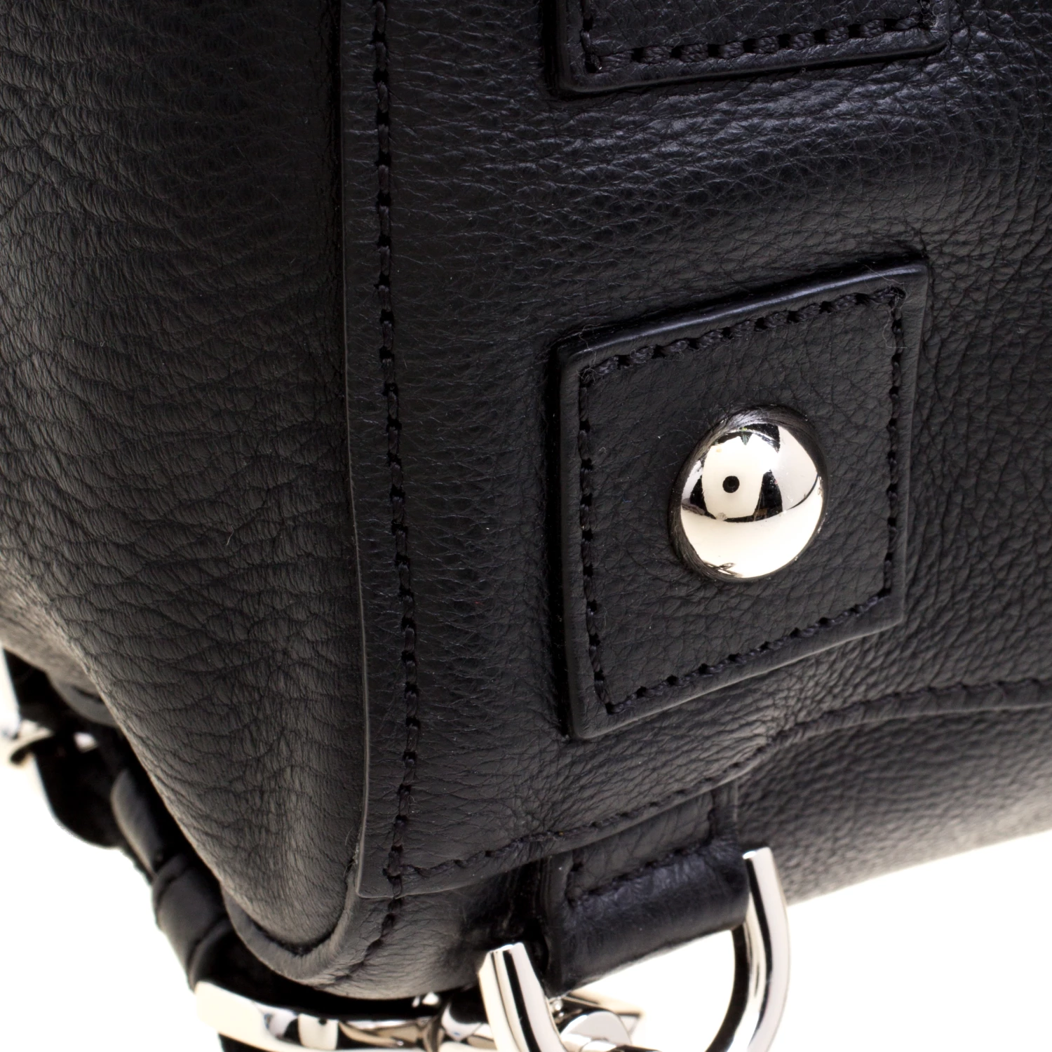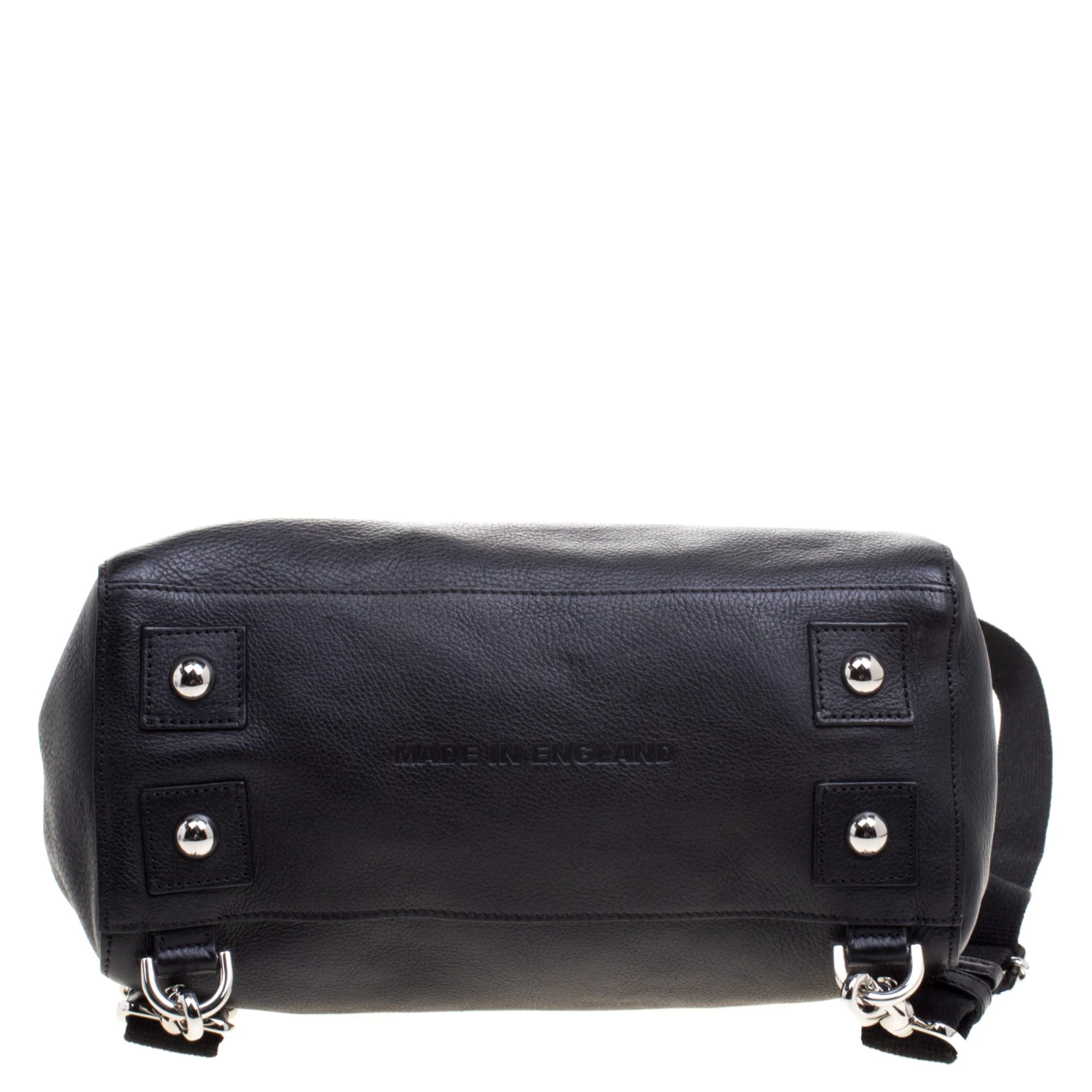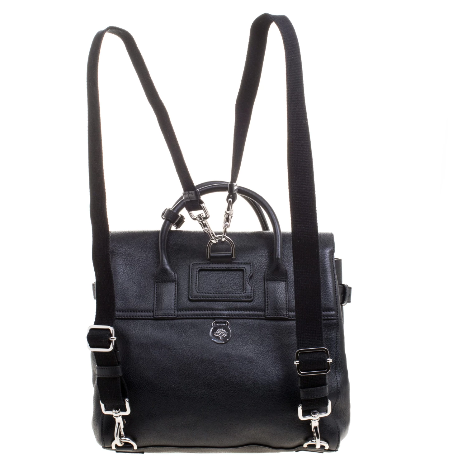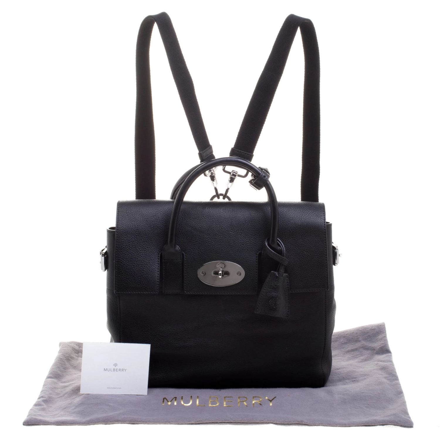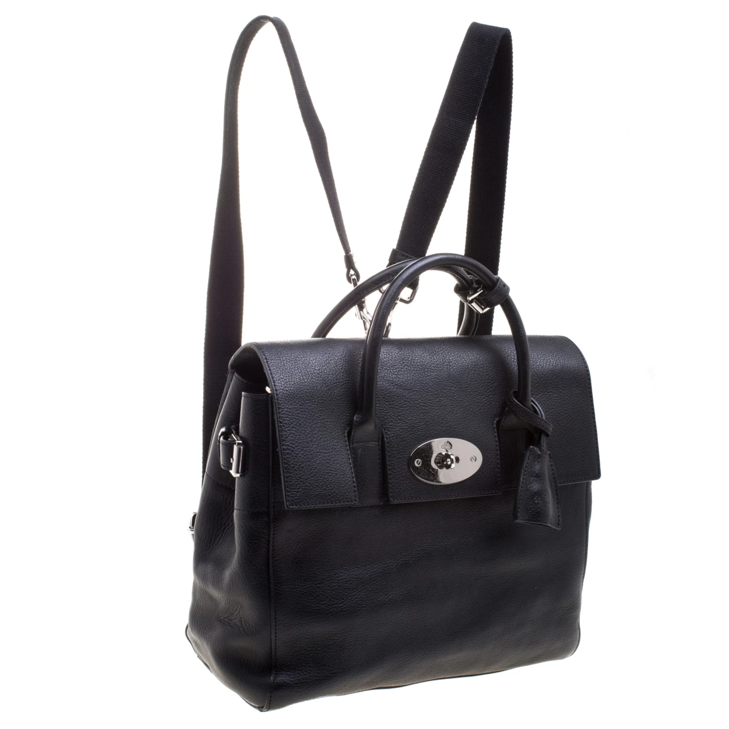 This stylish Bayswater backpack from Mulberry is from Cara Delevingne’s collection. Versatile in design it comes with dual rolled handles and removable shoulder straps. Crafted from black leather the front flap is secured by a twist lock and the backpack has protective metal feet at the bottom. The interior is leather lined and can easily hold your daily necessities.