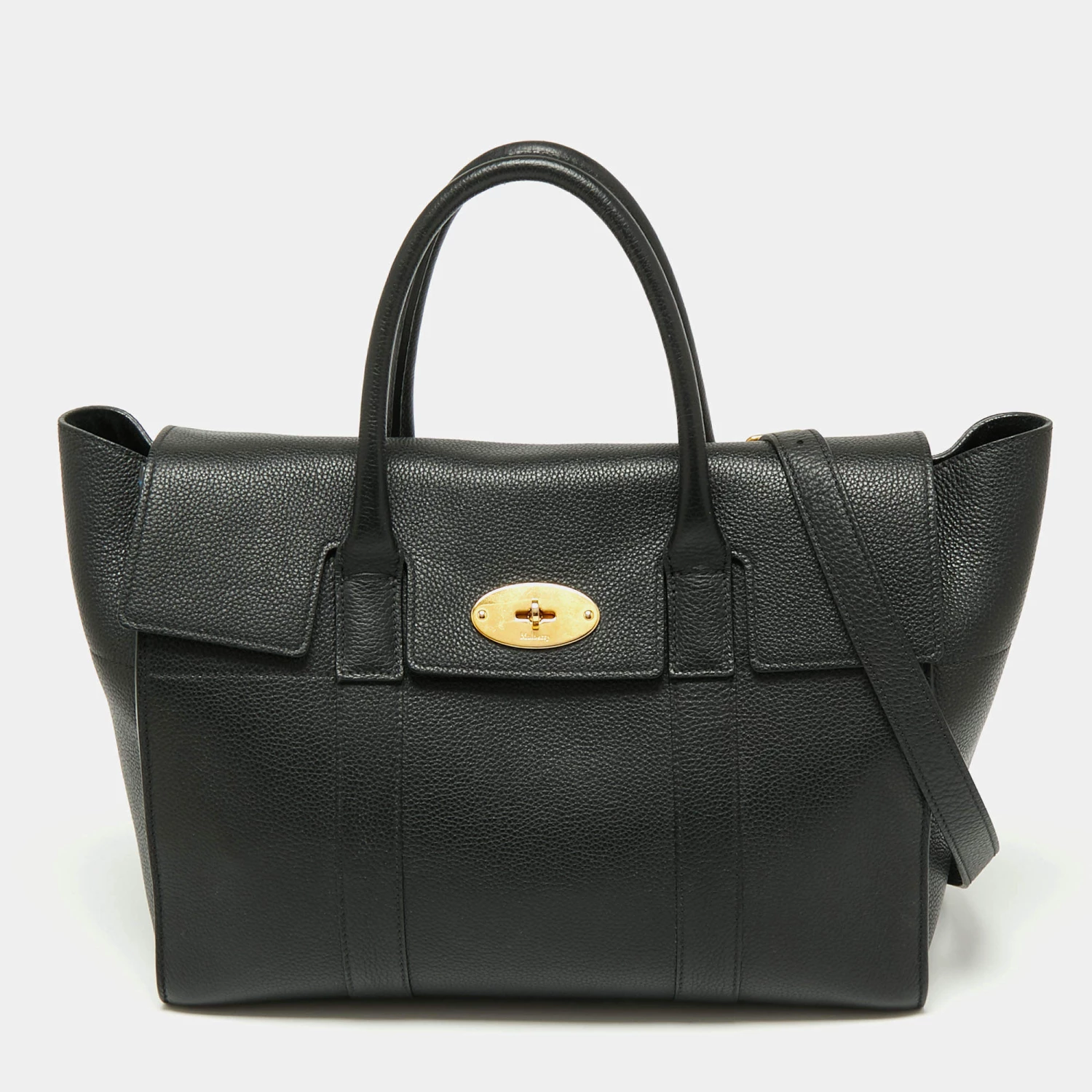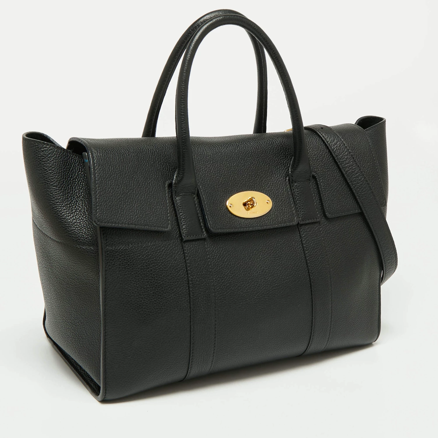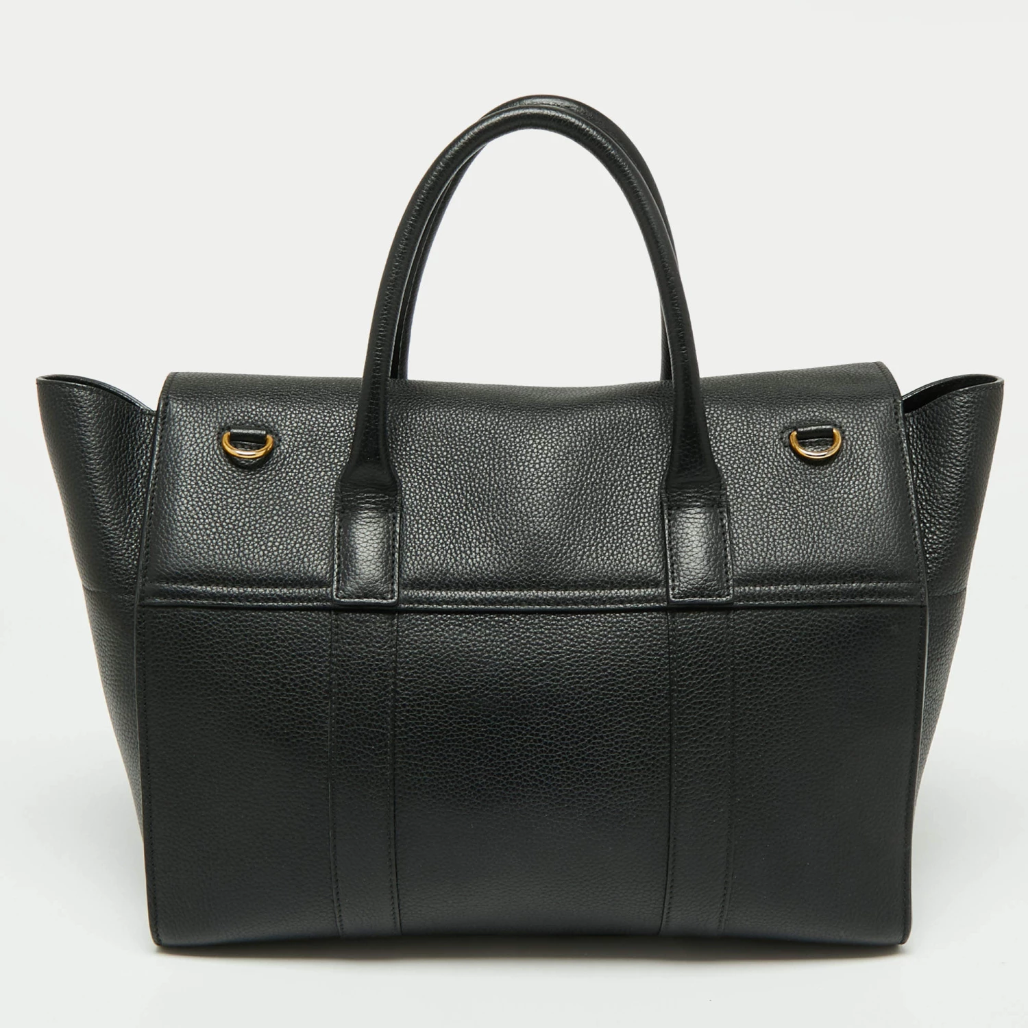 This Bayswater satchel from the House of Mulberry, with its precise structure and functional design, ensures maximum practicality and convenience. It is made from black leather, with a lock closure perched on the front. It has dual handles and a roomy suede-lined interior. This stunning satchel is perfect for everyday use.