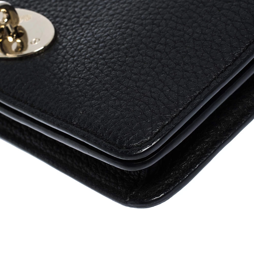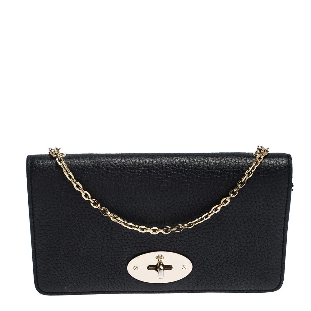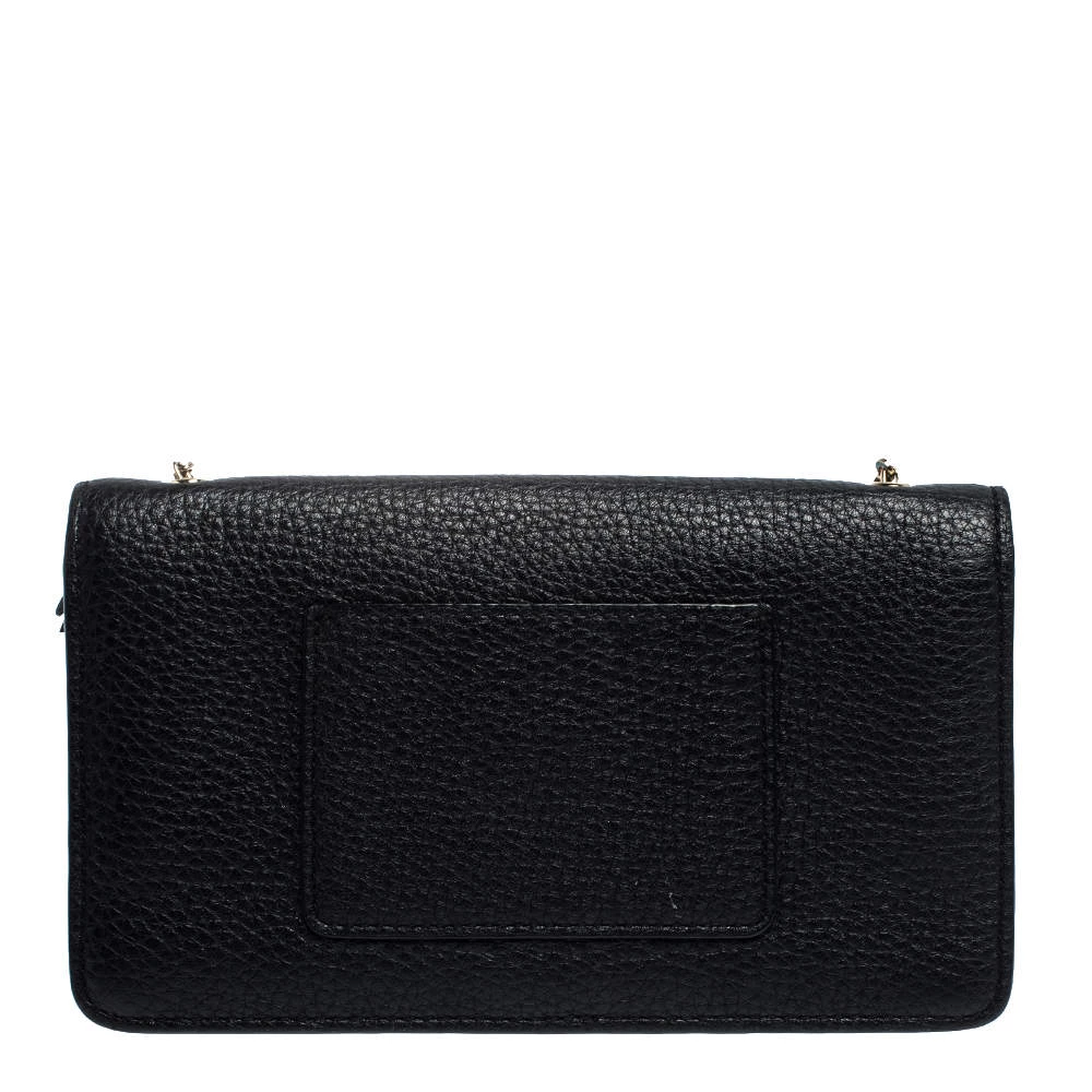 Mulberry brings you yet another gorgeous accessory with this Bayswater wallet. It has been crafted from black leather and has a flap that reveals a well-sized leather and fabric-lined interior with multiple card slots and a zip pocket. The lovely creation is complete with a chain sling and the recognisable lock on the front.