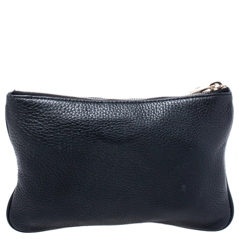 A pouch as lovely as this one from Mulberry surely deserves to be in every woman’s closet. It is made from black leather and it flaunts the brand plaque on the front. The zip-top closure opens to a well-sized fabric interior where you can store all your cosmetic and other girly things.