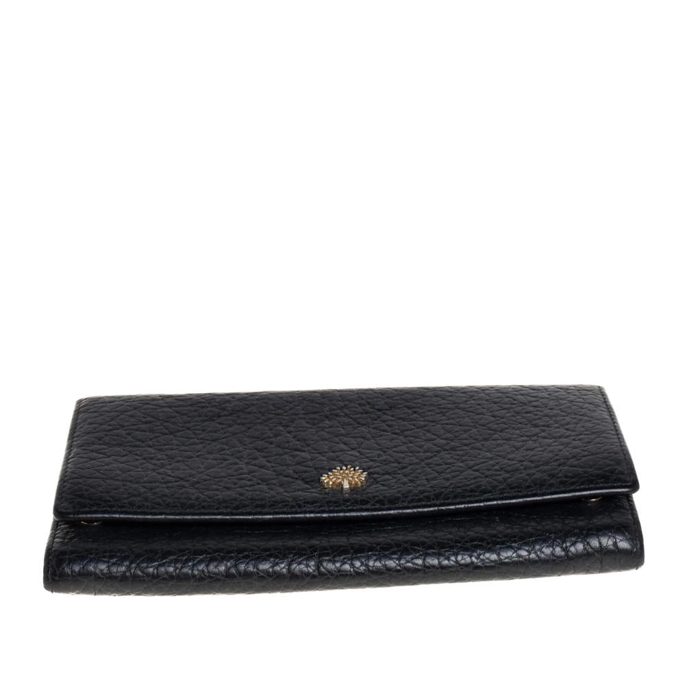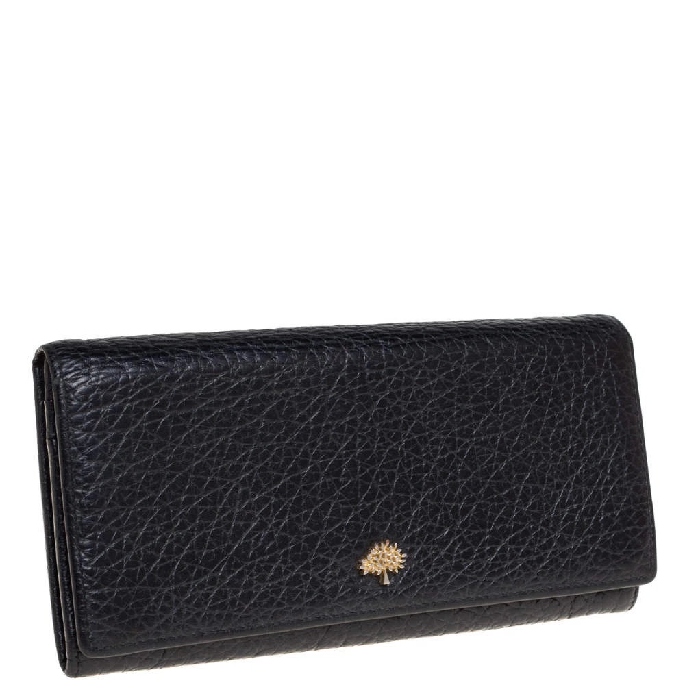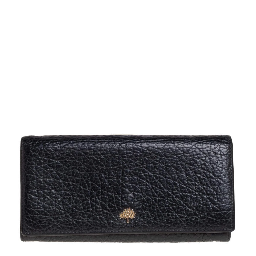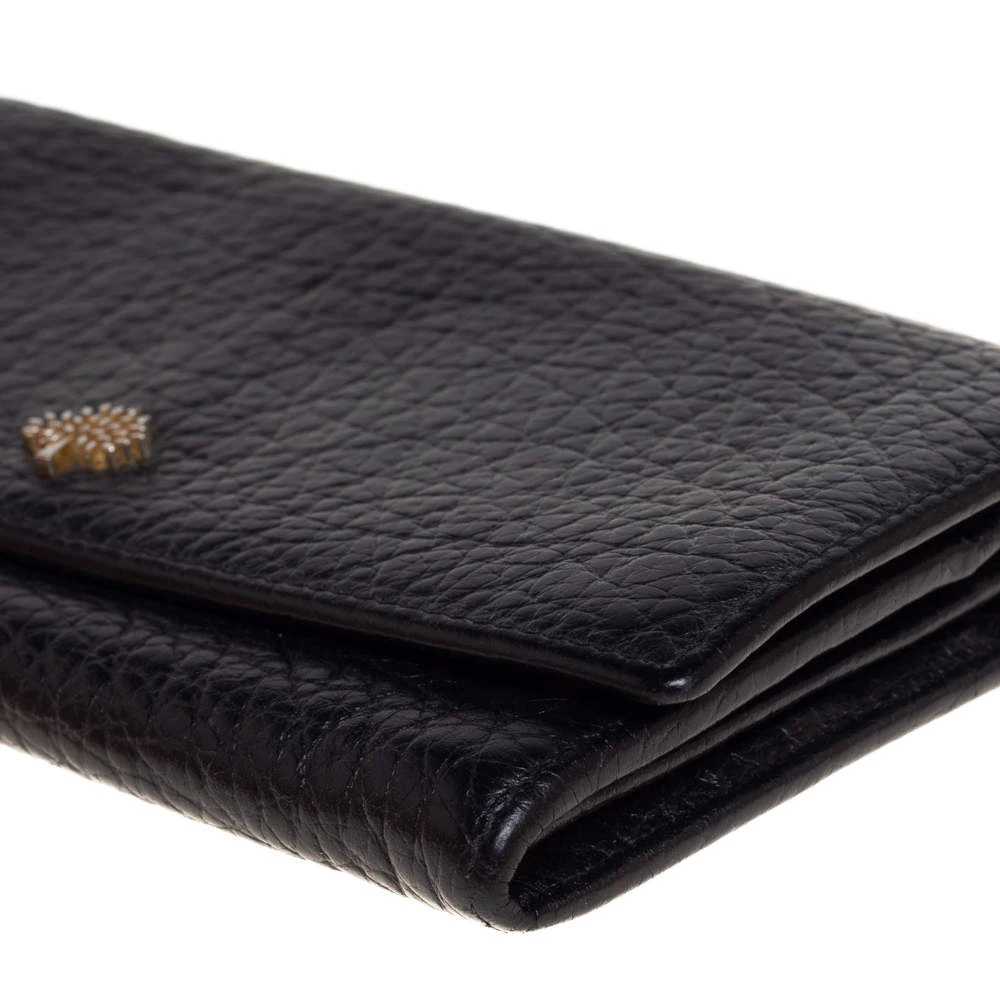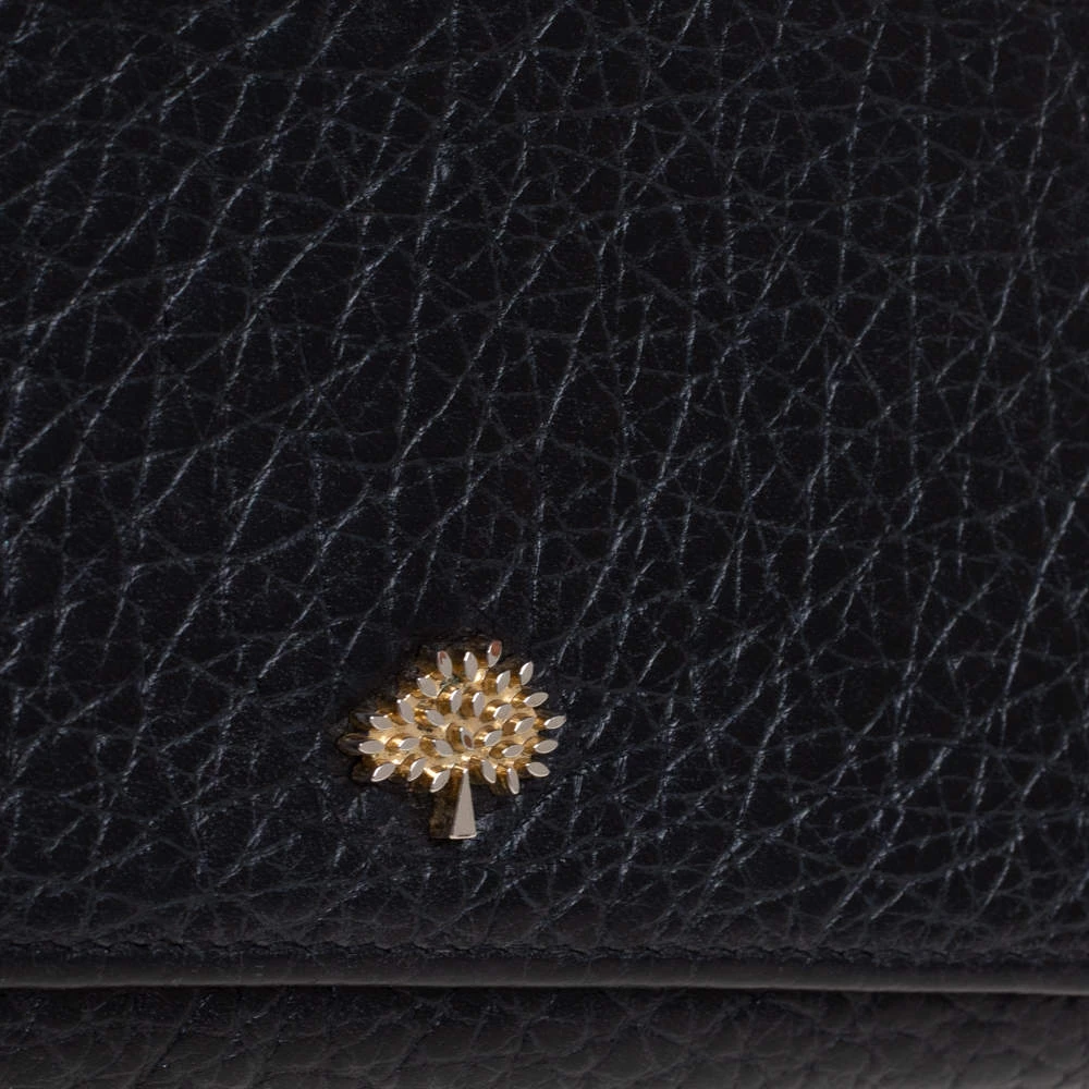 Add this classy Mulberry wallet to your wardrobe and carry all your monetary essentials in style. It features a black leather exterior with the signature tree logo on the front flap. The leather and fabric interior flaunts multiple card slots and a zipped compartment. This piece is indeed a fine buy!