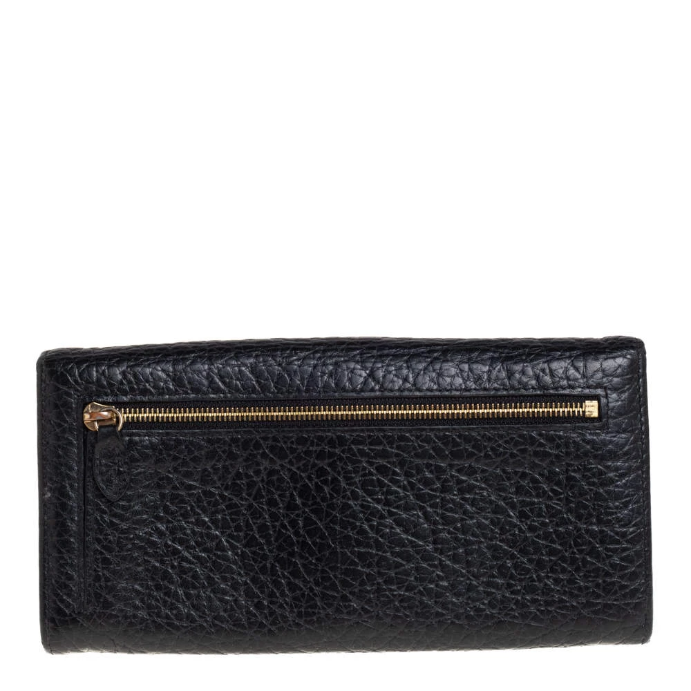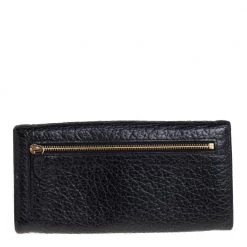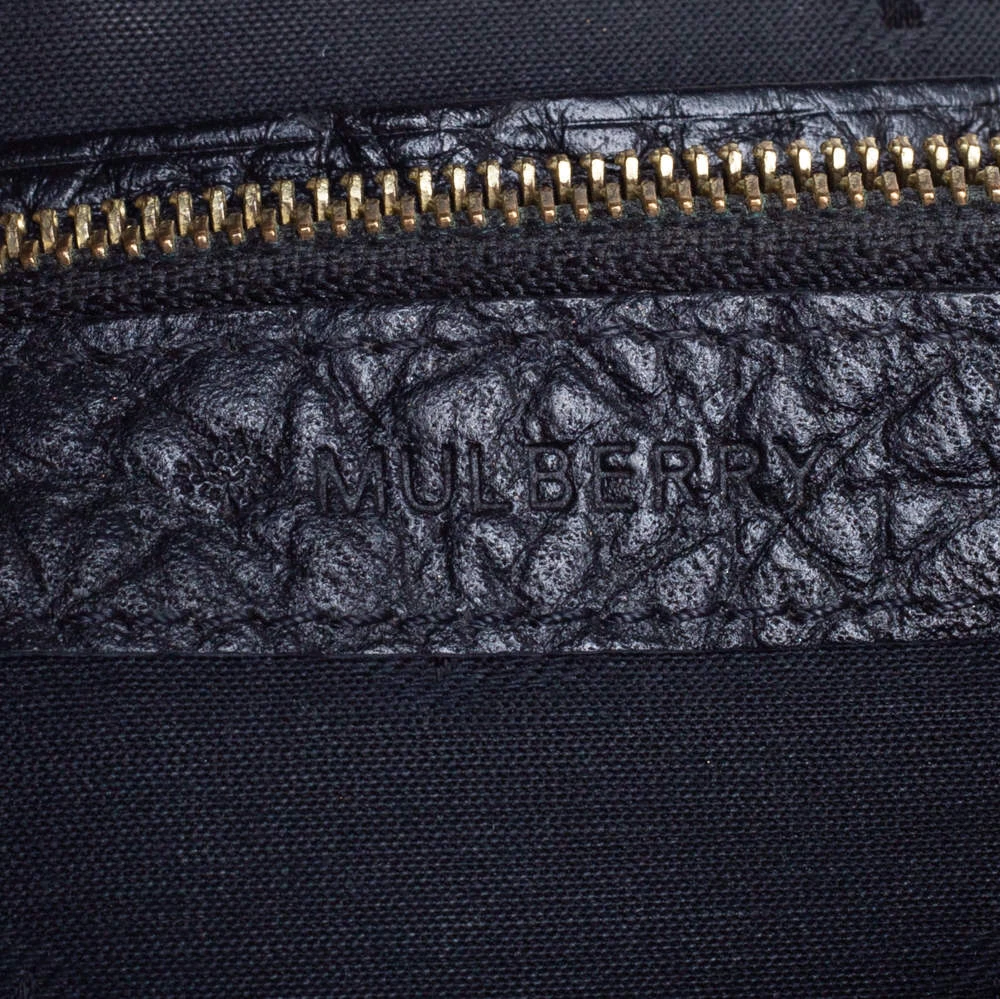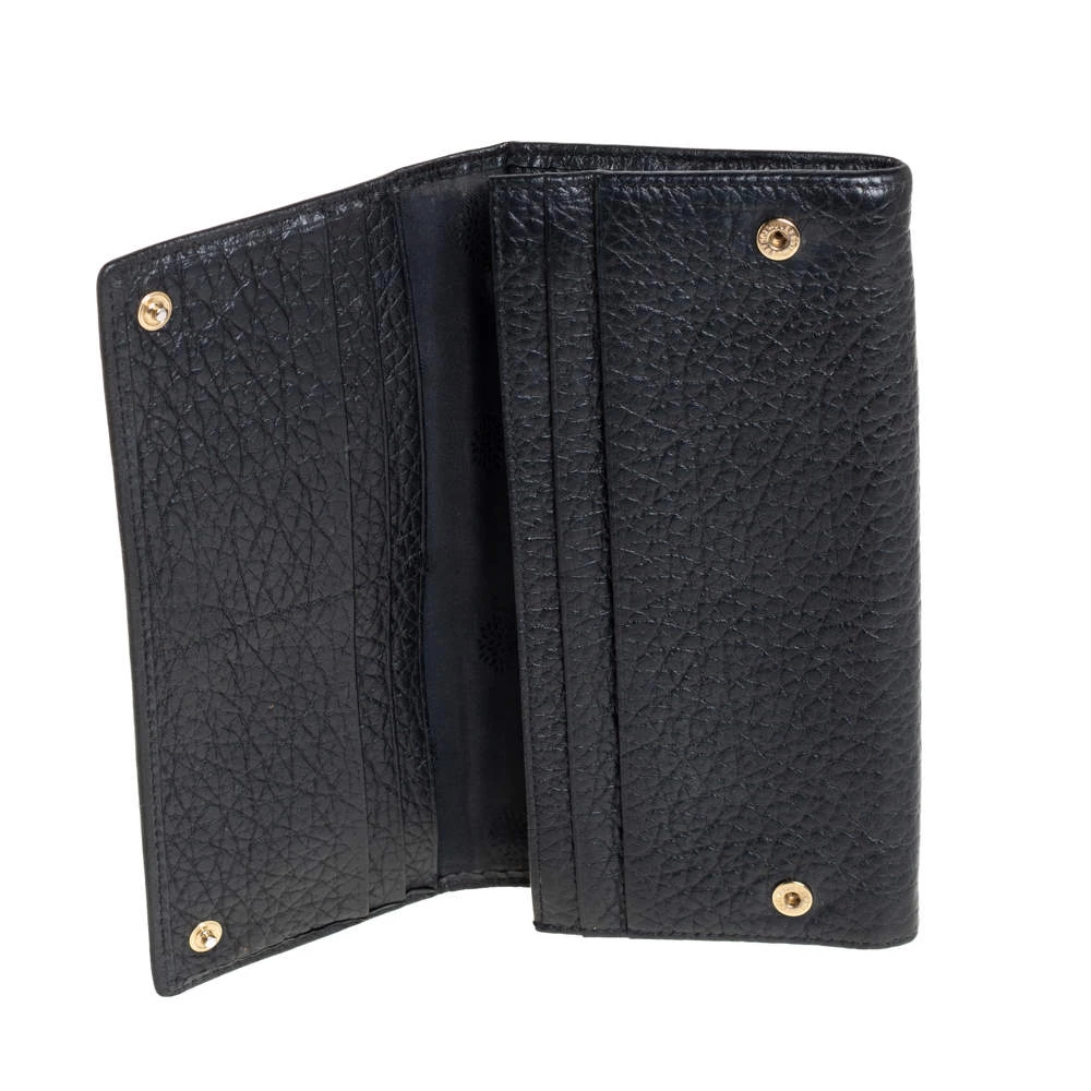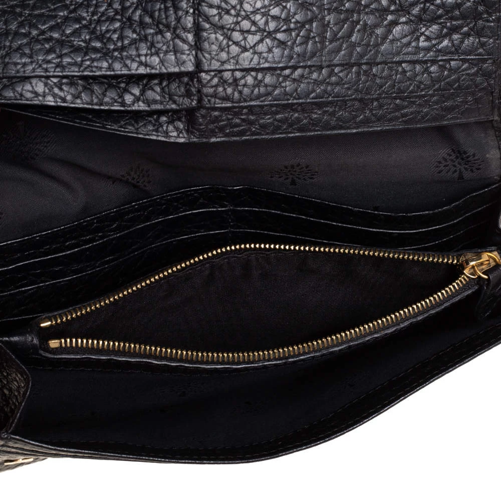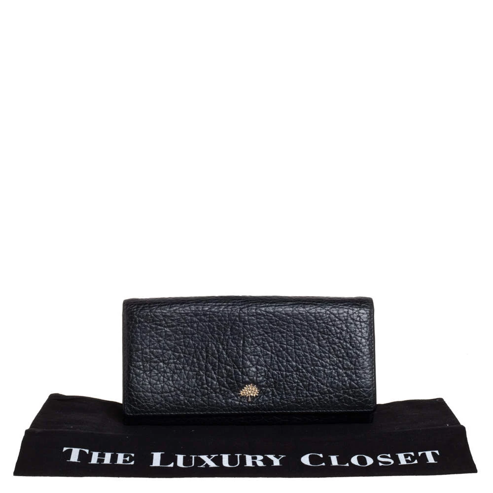 Add this classy Mulberry wallet to your wardrobe and carry all your monetary essentials in style. It features a black leather exterior with the signature tree logo on the front flap. The leather and fabric interior flaunts multiple card slots and a zipped compartment. This piece is indeed a fine buy!