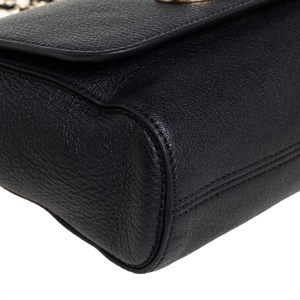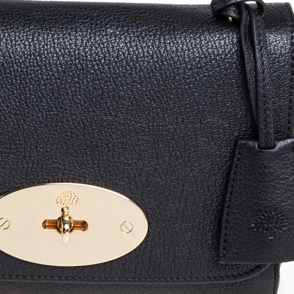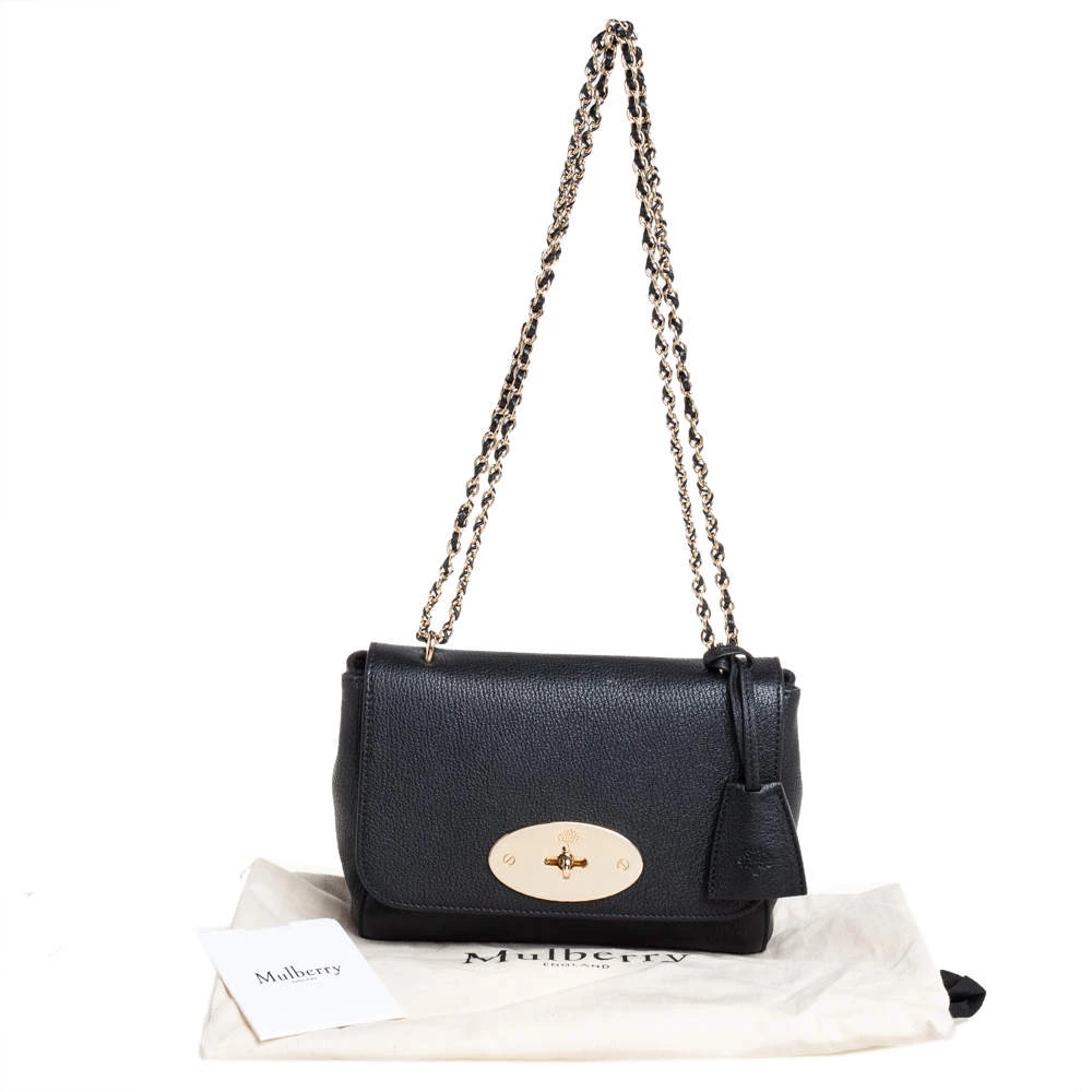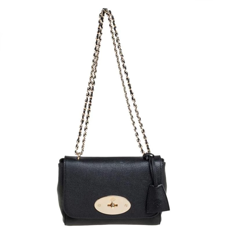 This Mulberry Lily bag is lovely. Crafted from leather, the black bag comes with a chain and leather woven shoulder sling, the signature postman’s lock on the flap, a dangling clochette, and a spacious Alcantara interior. It is ideal for everyday use.
