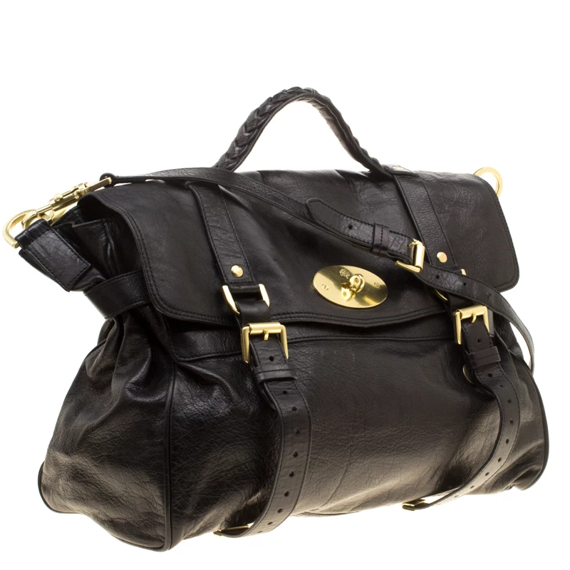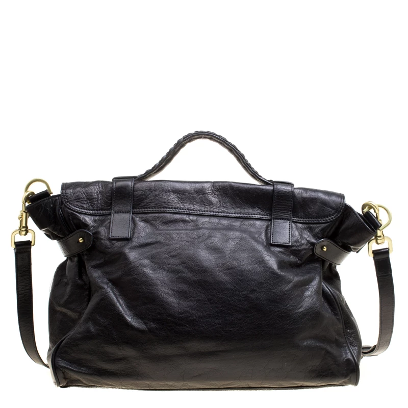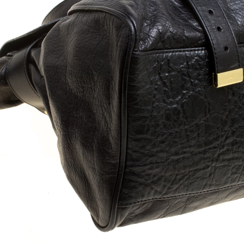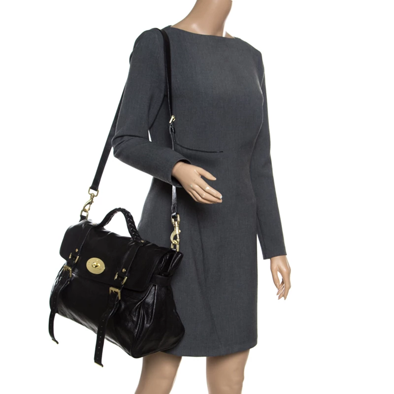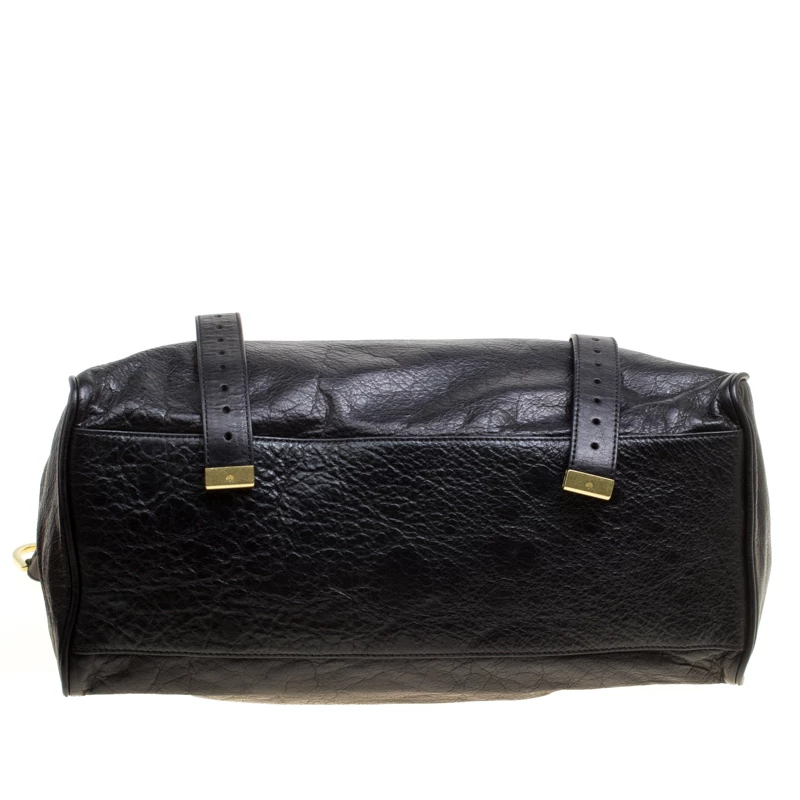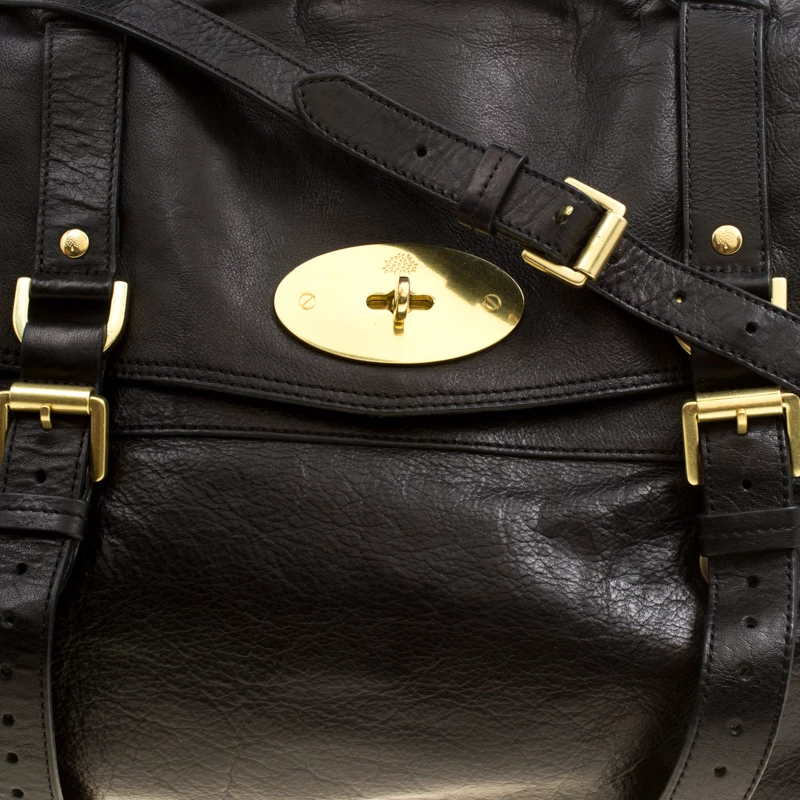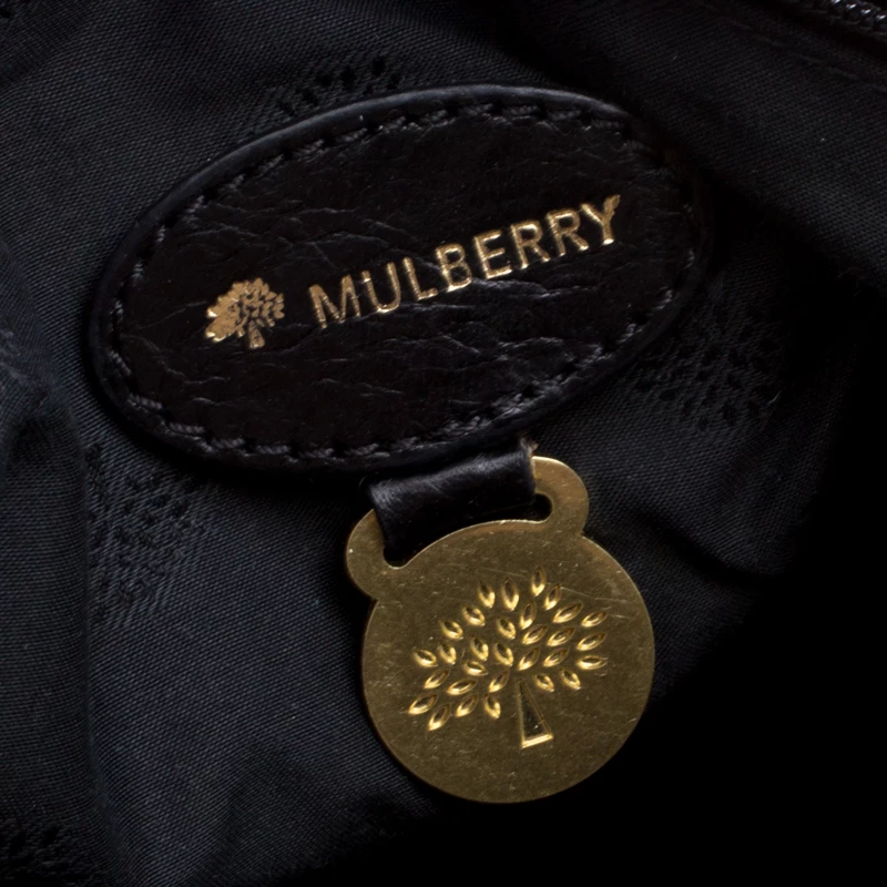 Mulberry brings you this handy bag that will dutifully support you wherever you go. It has been crafted from leather in black and equipped with a twist lock on the flap that secures a spacious fabric interior capable of holding all your necessities. Lastly, it is held by a single handle and a detachable shoulder strap.
