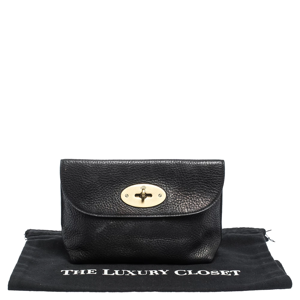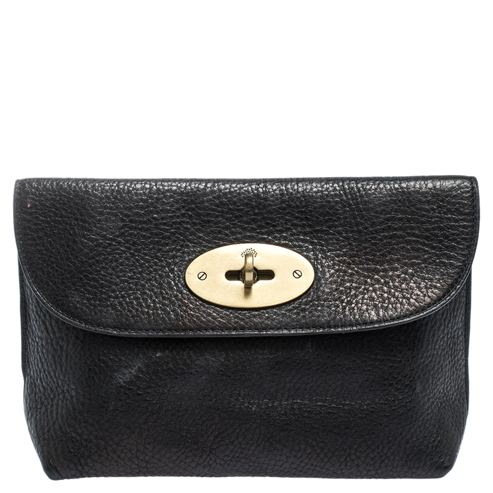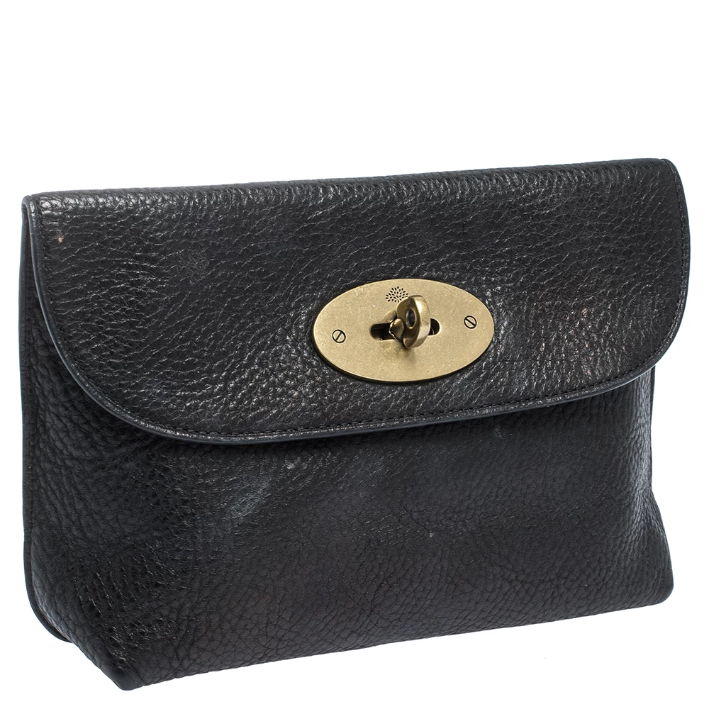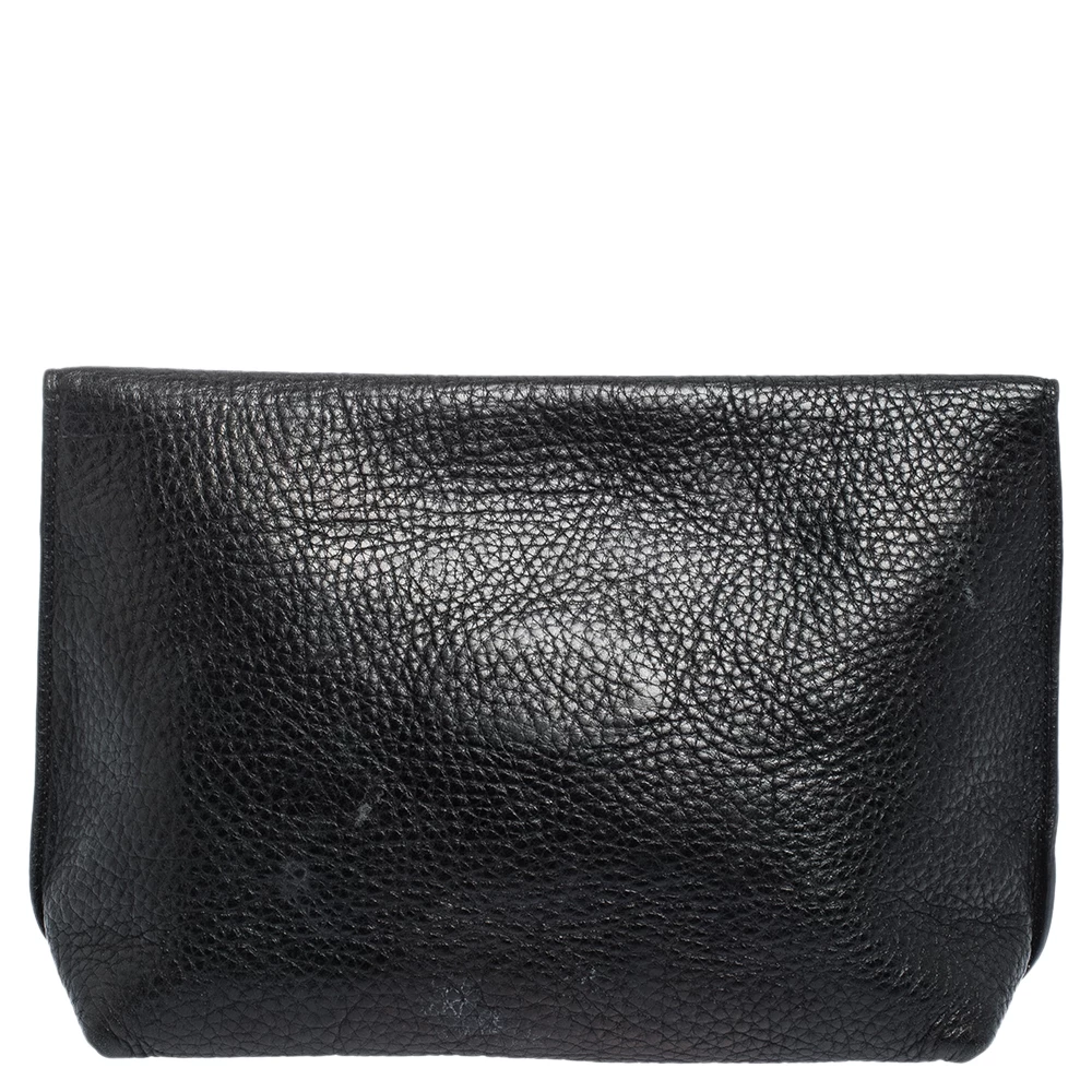 A pouch as lovely as this one from Mulberry surely deserves to be in every woman’s closet. It is made from black leather and flaunts a turn-lock closure in the front. The closure opens to a well-sized fabric interior where you can store all your cosmetic and other girly things.