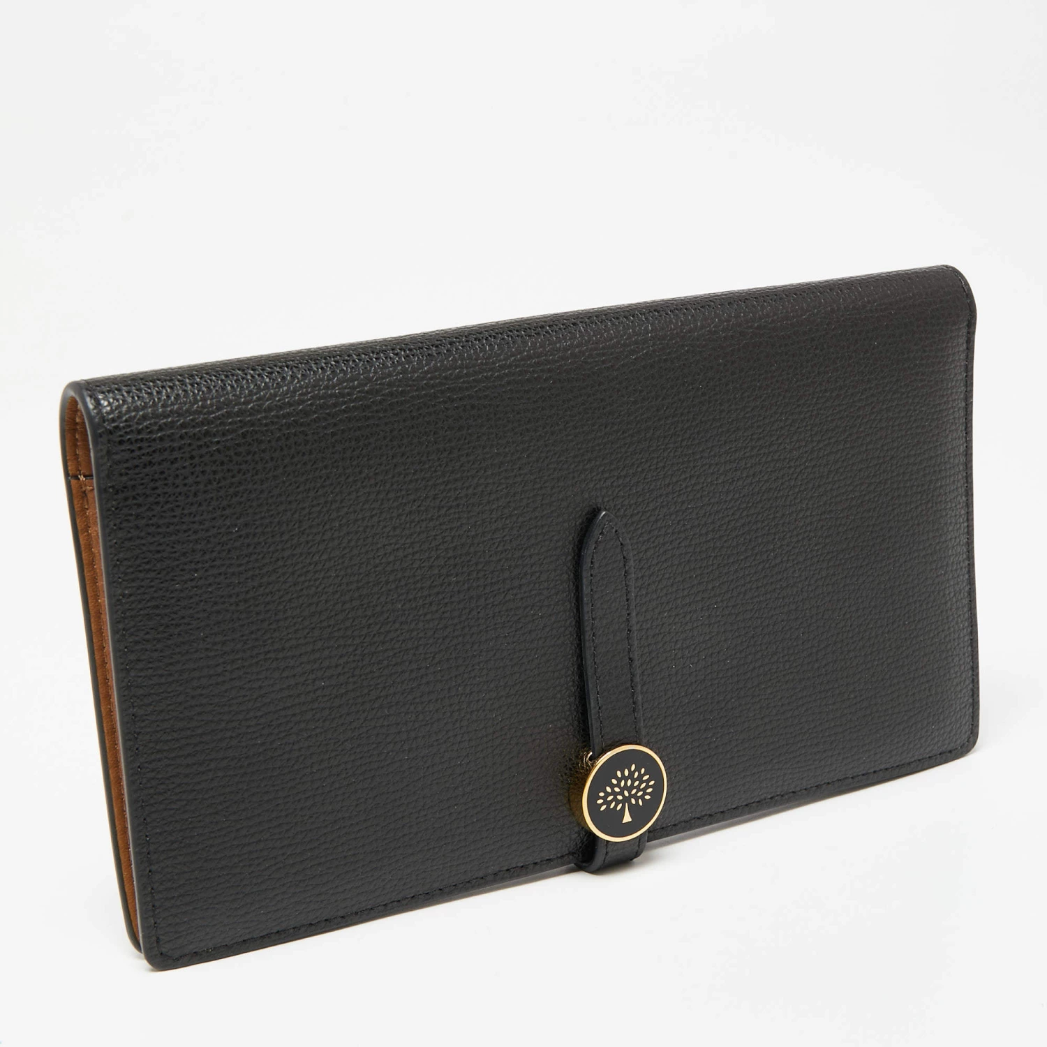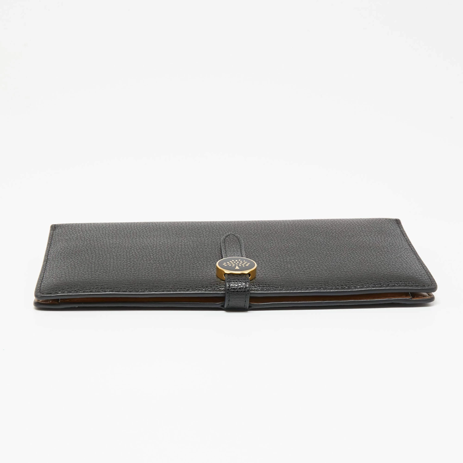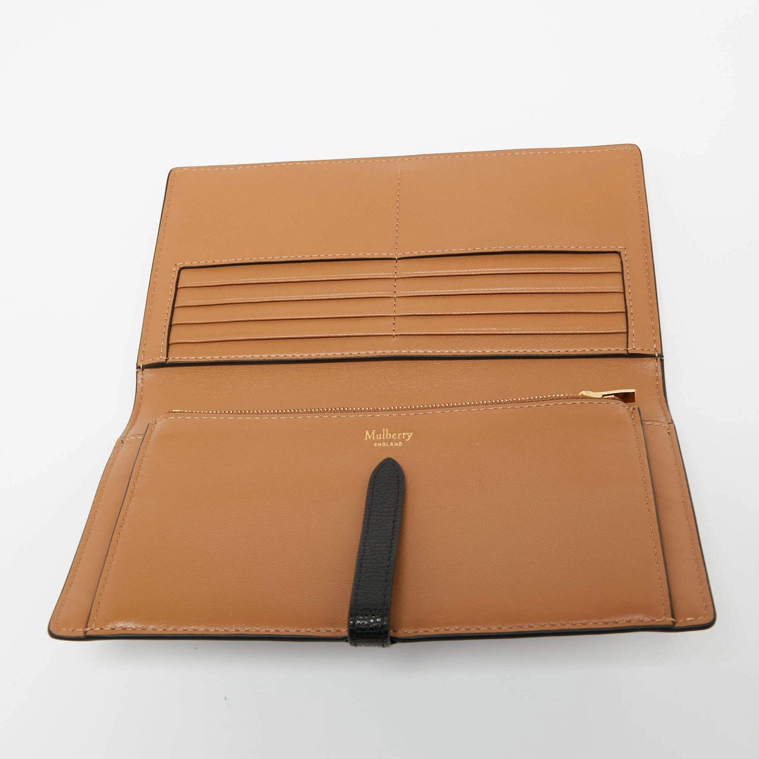 The functional design of this Mulberry wallet makes it easy to use and carry around. With a classy black shade, it is created from leather and is updated with a brand logo on the front. The leather and fabric interior of this wallet is divided into different compartments.