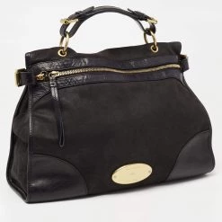 With this functional and fashionable Taylor bag from Mulberry, you have nothing to worry about! It is crafted using black leather and Nubuck leather, with a logo accent placed on the front. This bag is completed with a top handle, a spacious fabric-lined interior, and gold-tone hardware.