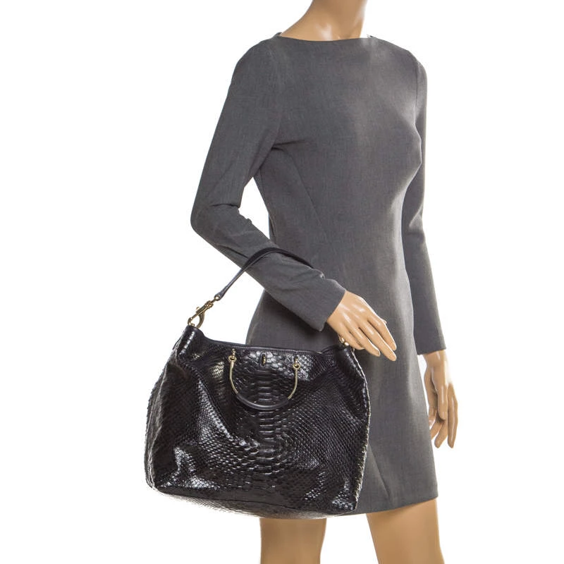 On some days, all one needs is a striking bag to create a winning look, like this creation from Mulberry. It has a modern design with a python-embossed leather exterior covered in black and a top revealing enough space to carry the things you cannot do without. Held by two metal handles, this tote is perfectly styled to win hearts.