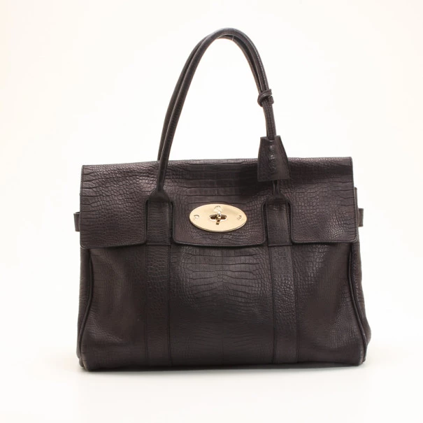 Luxurious and timeless, it’s no wonder fashionistas and celebrities alike covet the iconic Bayswater handbag by Mulberry. This version is crafted from croc embossed leather that features the well known Postman’s lock closure, rolled leather handles, hidden padlock in a leather pouch and removable straps. The spacious suede lined interior features a zip pocket and two patch pockets.Original Retail Price: US $1,850Condition: Gently Used (Minor scuffs on borders and dull scratches on hardware)Dimensions: 28 CM(H) 36 CM(W)Handle Drop: 17 CM (Distance between handle and top of the bag)Material: Leather Exterior, Textile InteriorHardware: Gold-toneIncludes: Original Dustbag
