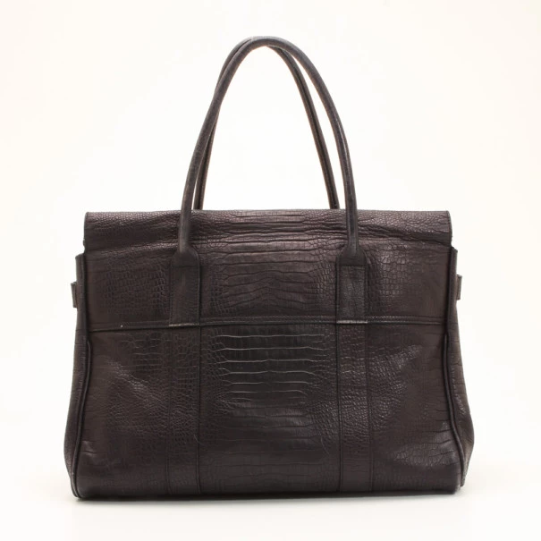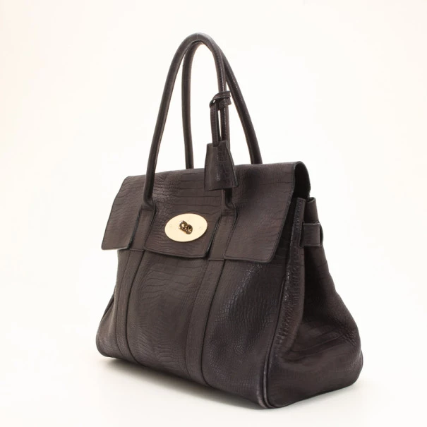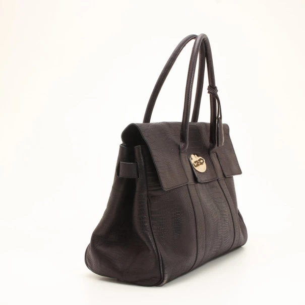 Mulberry Black Soft Croc Printed Bayswater Satchel For Women