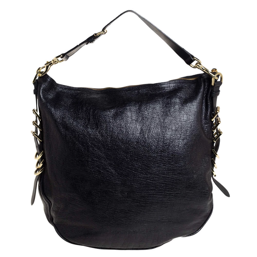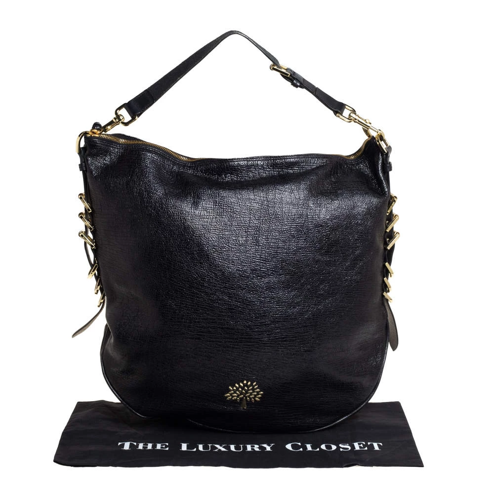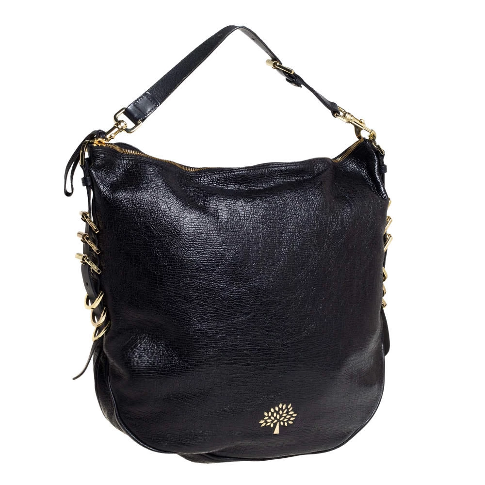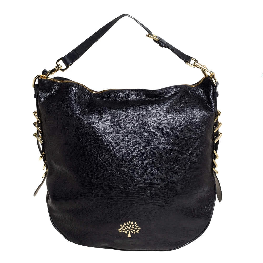 This Mulberry Mila hobo is lovely. Crafted from textured leather, the black bag comes with a single top handle, the signature tree logo on the front, and a spacious fabric interior. It is adorned with gold-tone hardware and is ideal for everyday use.
