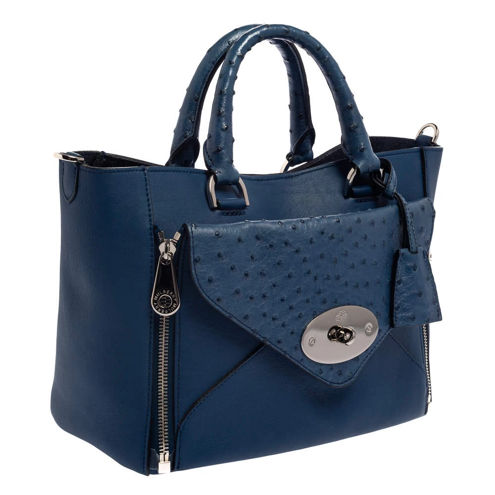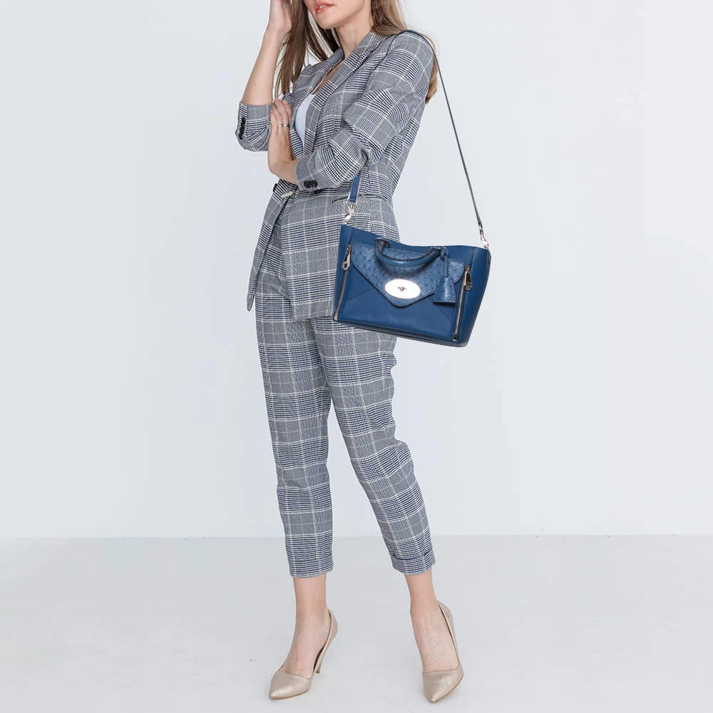 This Willow tote by Mulberry has the perfect blend of style and functionality. Crafted from leather, it comes in a shade of blue and features a lovely silhouette. The tote is held by dual handles, a magnetic closure opens to reveal a suede-lined interior with enough space to house your essentials and more. The exterior of the bag is made interesting with the addition of a front pocket with an ostrich flap, turn-lock closure, and zip detailing on either side. The bag is finished impeccably with silver-tone hardware. (NOTE: FOR UAE CUSTOMERS ONLY)