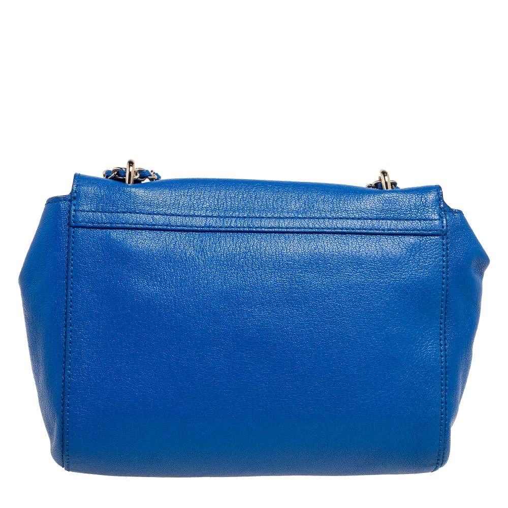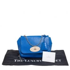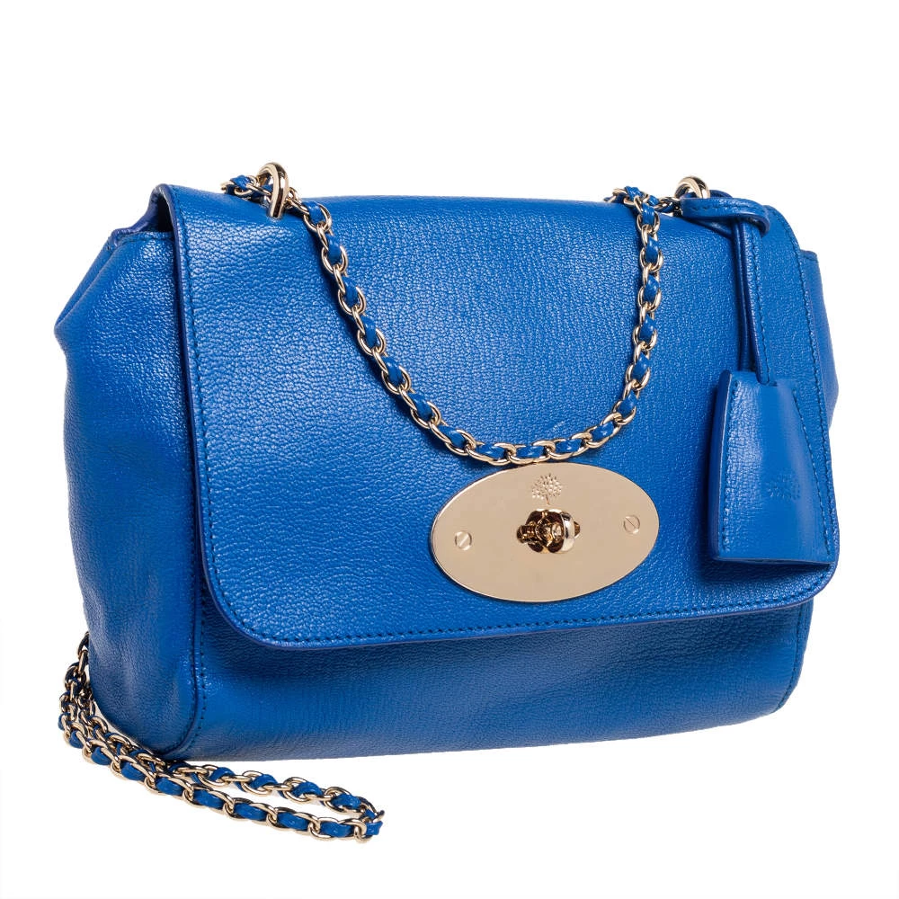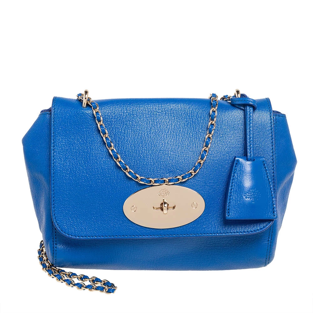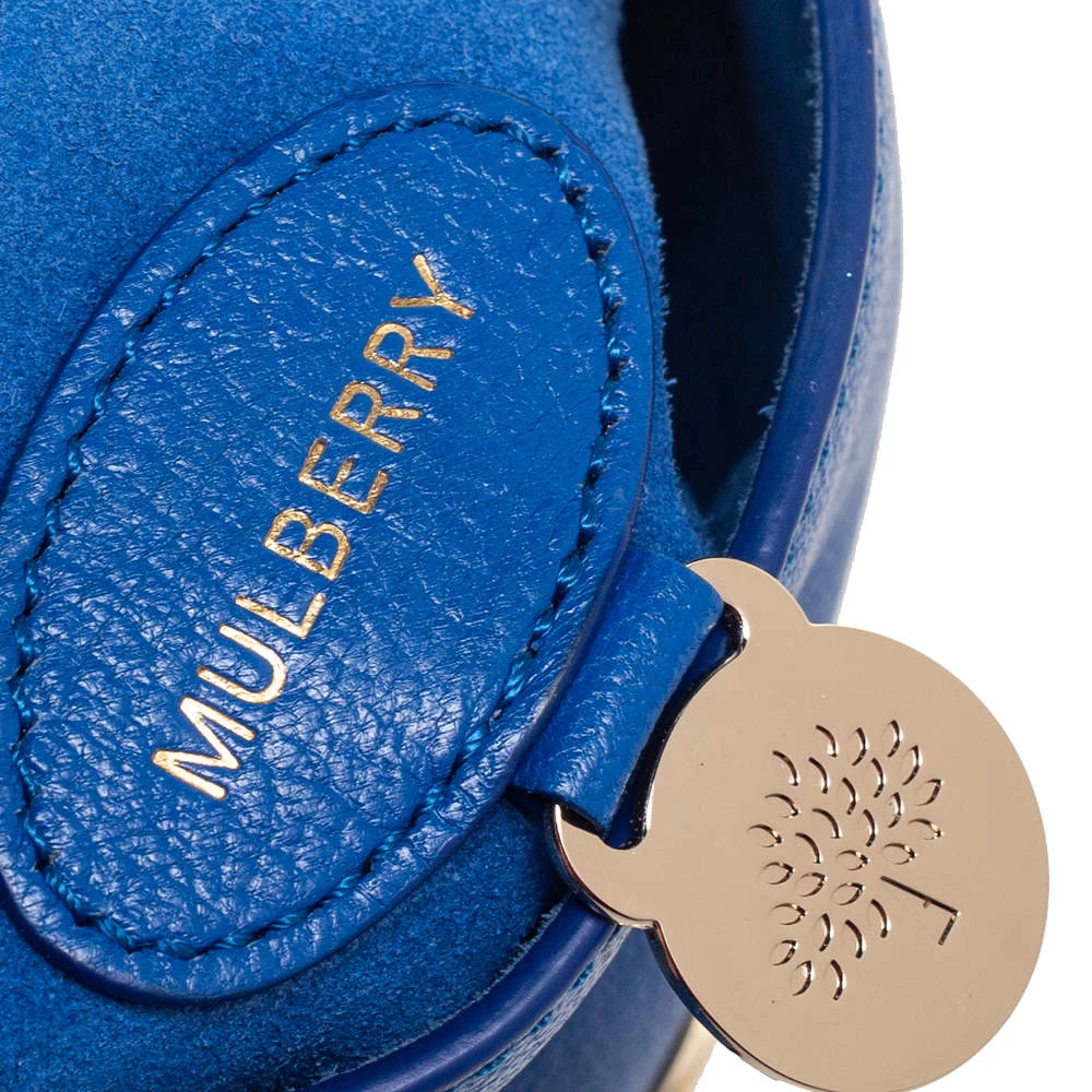 A beautiful designer shoulder bag to carry your essentials this season. Designed by Mulberry, this blue leather bag features a postman lock on the flap, a well-sized interior lined with suede, and a chain-leather sliding handle for shoulder and crossbody wear.