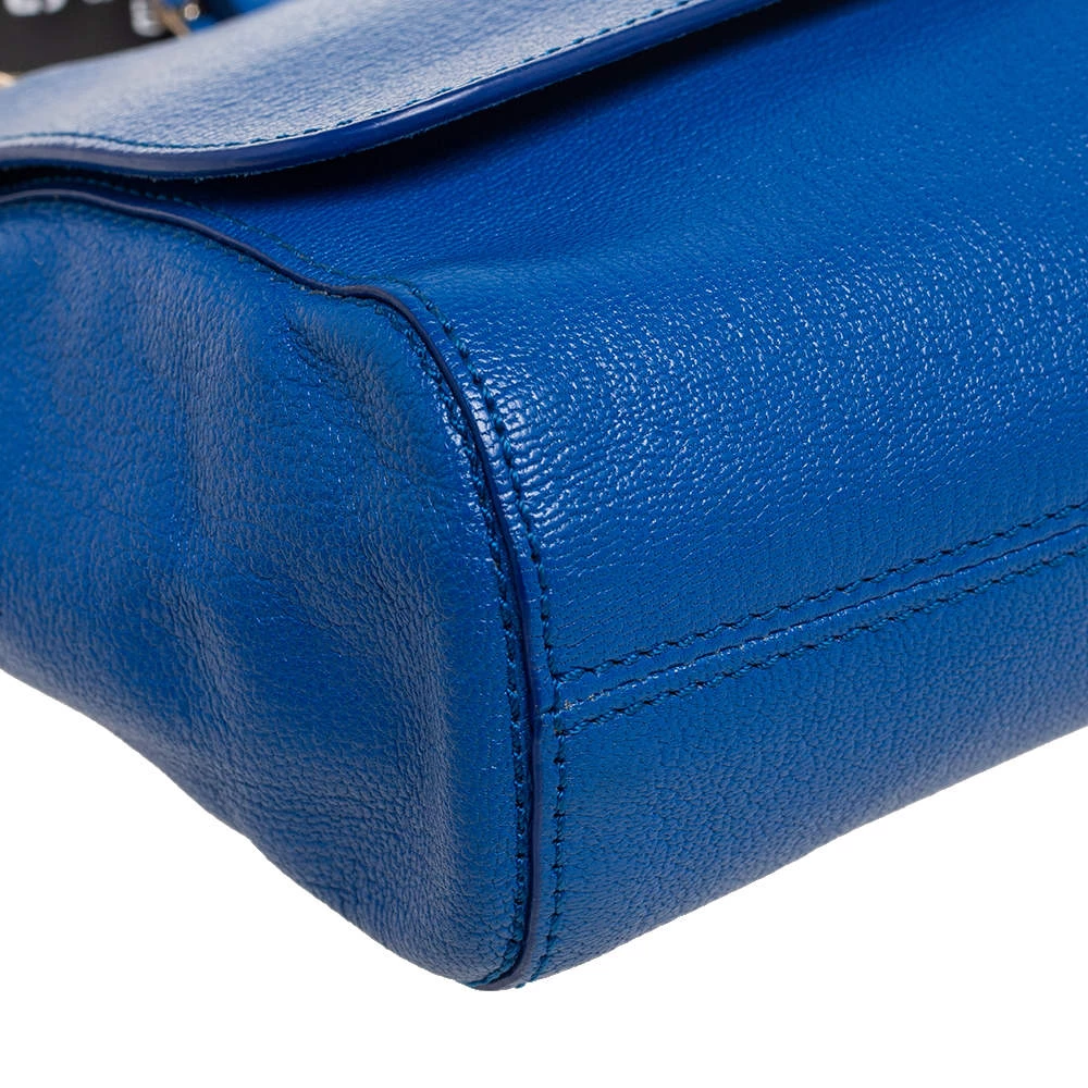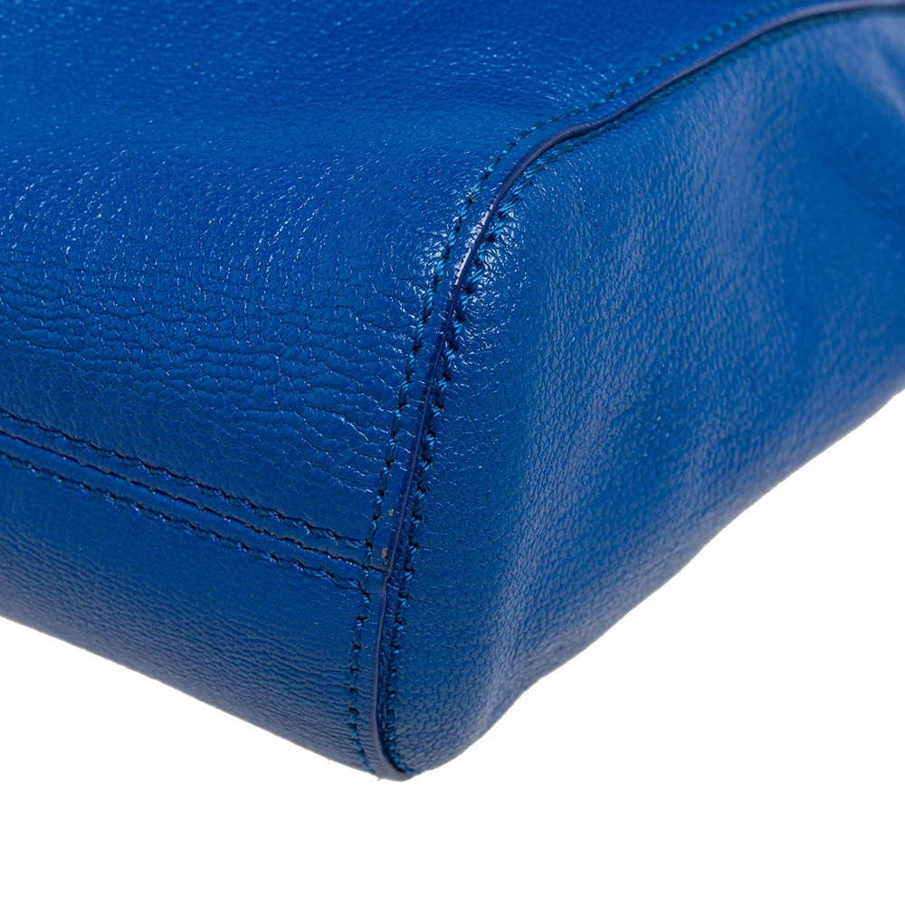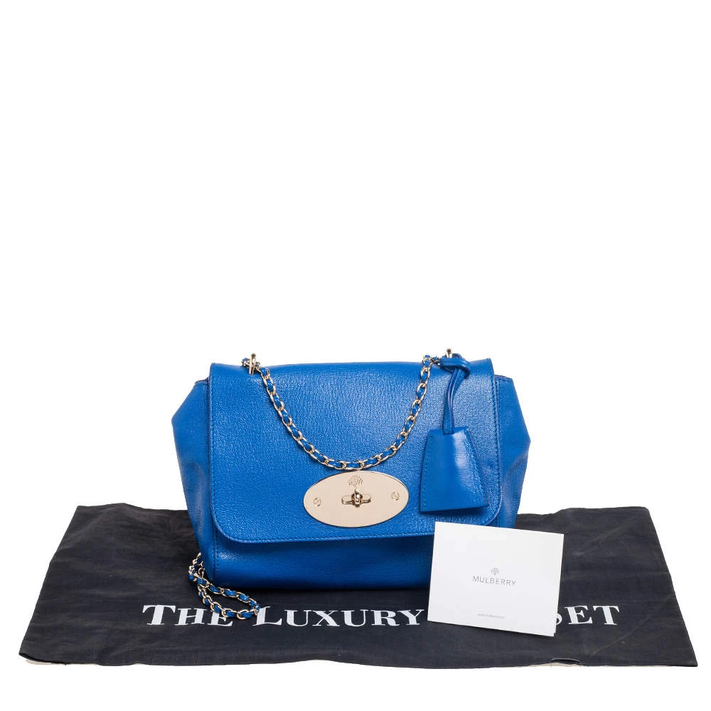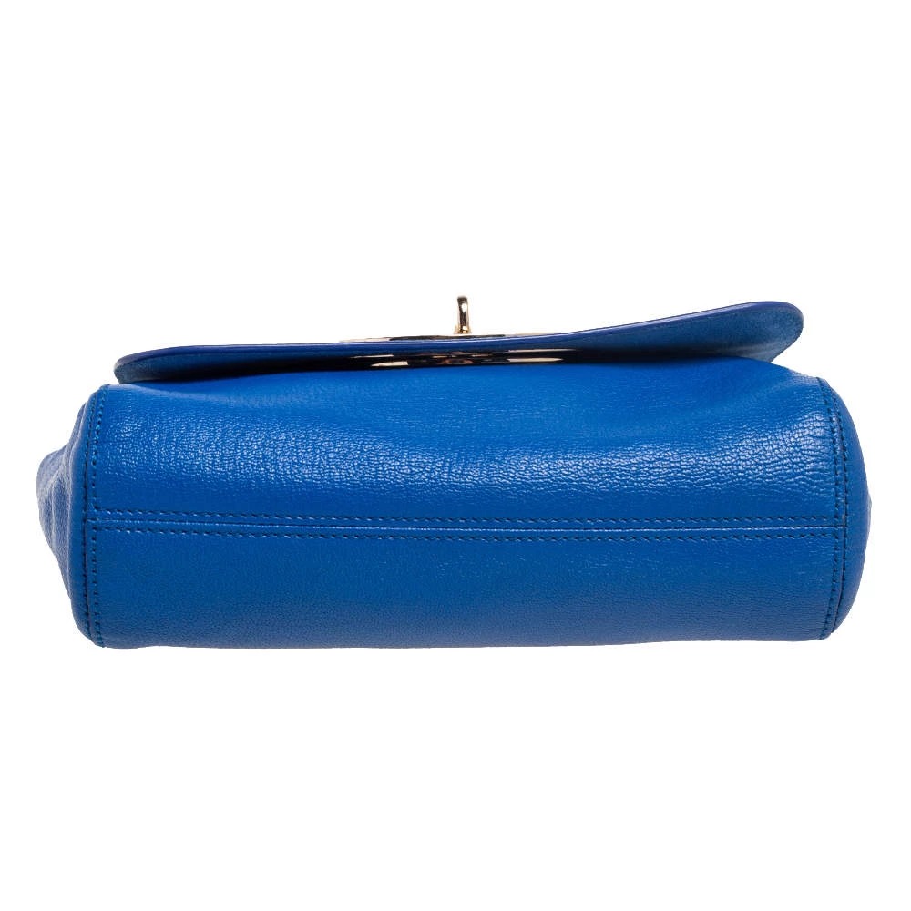A beautiful designer shoulder bag to carry your essentials this season. Designed by Mulberry, this blue leather bag features a postman lock on the flap, a well-sized interior lined with suede, and a chain-leather sliding handle for shoulder and crossbody wear.