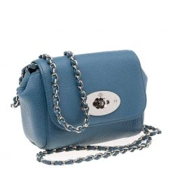 This Mulberry mini Lily bag is lovely. Crafted from leather, the blue crossbody bag comes with a chain and leather woven strap, a postman’s lock on the flap, and an Alcantara-lined interior.