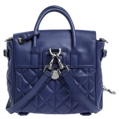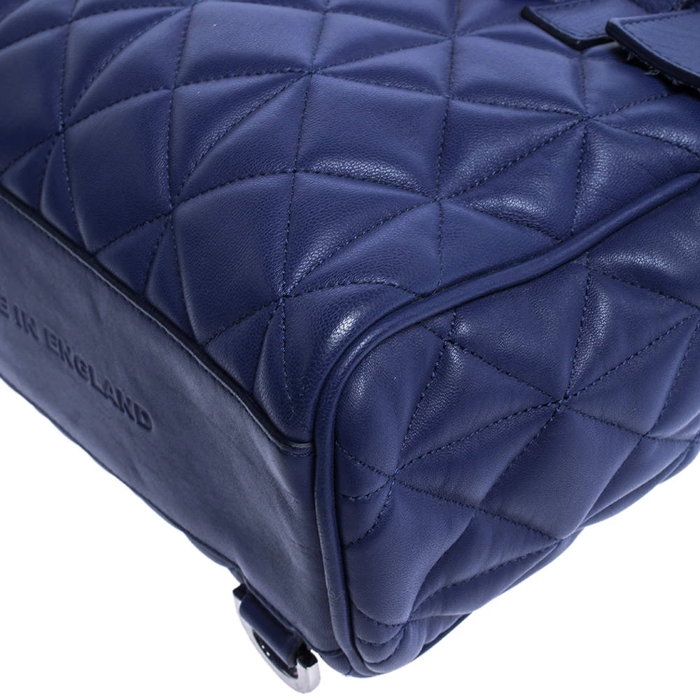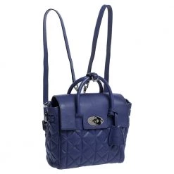 This stylish bag from Mulberry is from the Cara Delevingne collection. Versatile in design it comes with dual-rolled handles and removable shoulder straps. Crafted from blue quilted leather, the front flap is secured by a twist lock. The interior is suede lined and has a zip pocket. This backpack is perfect for everyday use.