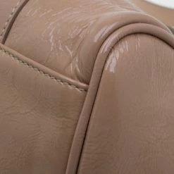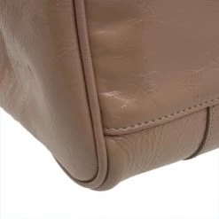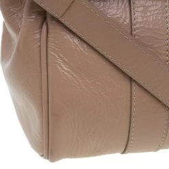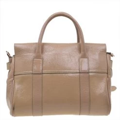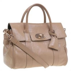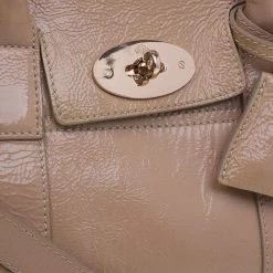This exquisite Bayswater satchel by Mulberry comes crafted in blush pink wrinkled patent leather. The exterior features double top handles. The flap come with signature Postman-lock closure opens to a roomy suede lined interior and has a zipper pocket and an open compartment.