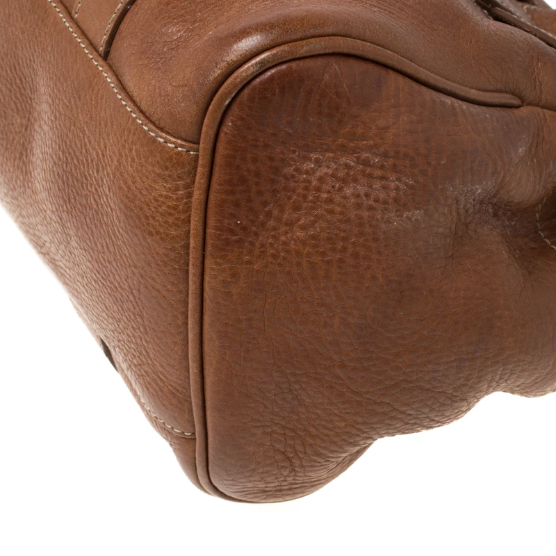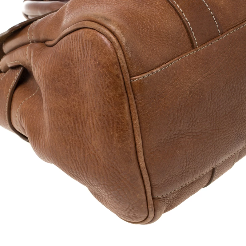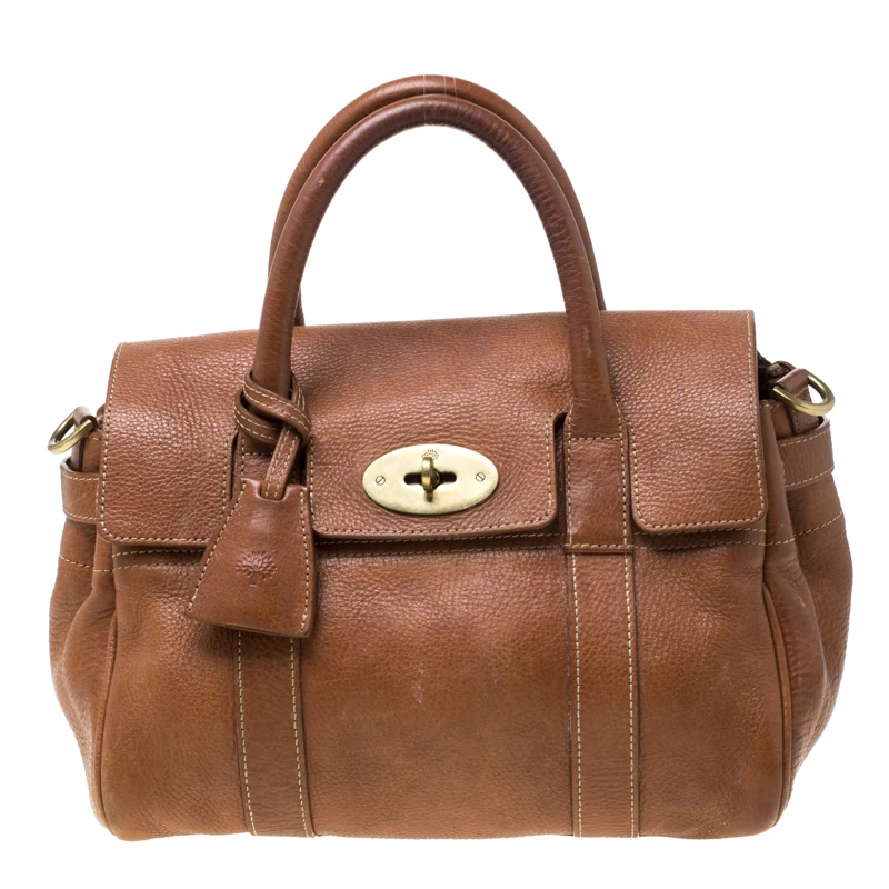 Handbags like these are hard to come by, so quickly grab one when you can. Crafted from leather, this Mulberry bag is equipped with dual top handles, a leather tag and a shoulder strap. The turn-lock closure opens to a spacious interior that houses a zip pocket.