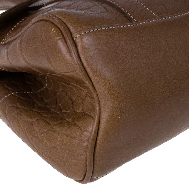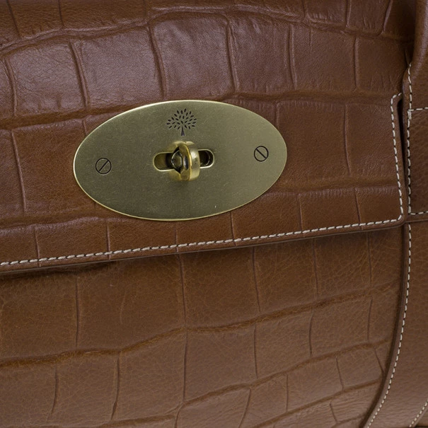 This celebrity coveted Bayswater handbag by Mulberry is timeless. This version is crafted from tan brown colored embossed leather that features the well known Postmanโs lock closure in gold-tone hardware, rolled leather handles and twist-lock closure. The spacious suede lined interior features a zip pocket and two patch pockets.Original Retail Price: US $1,307