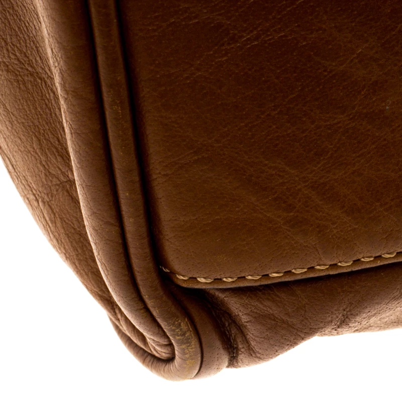 Mulberry’s smart and stylish ‘Alexa’ shoulder bag is a timeless collectible. Crafted in brown leather, the bag features a gold tone turn-lock closure, and an adjustable shoulder strap. The dual belted flap and interwoven top handle add an edge to the design. The fabric-lined interior houses a zip pocket. Team this up with your work wear for a smart look.