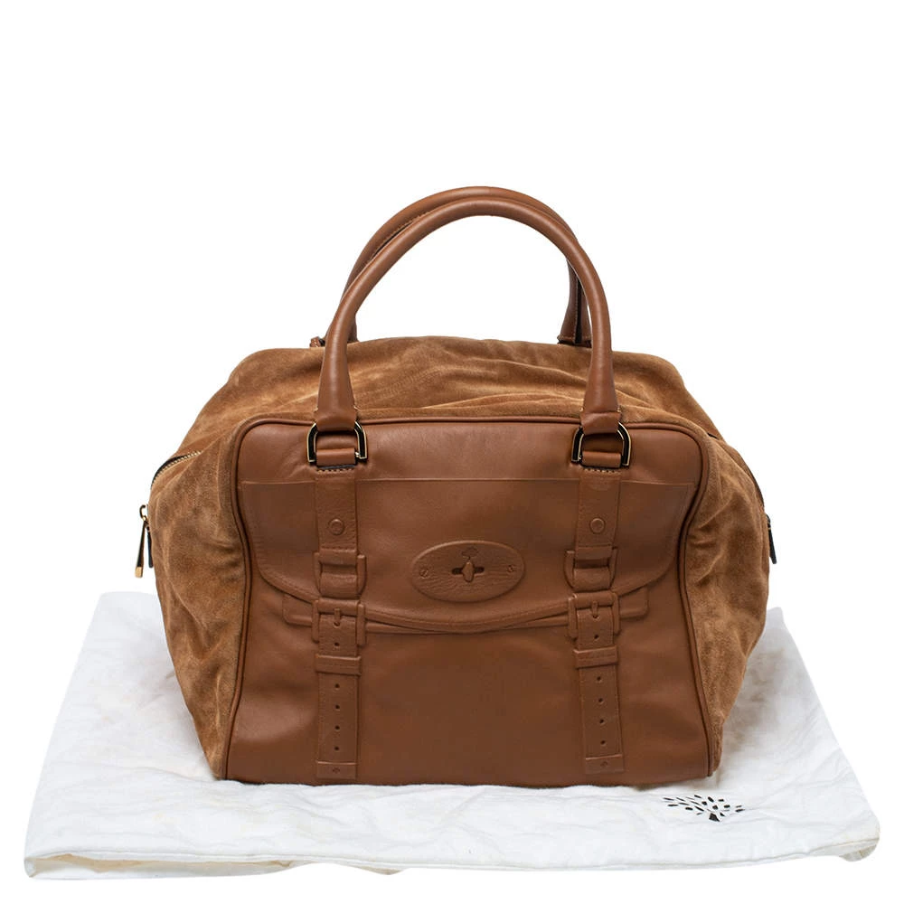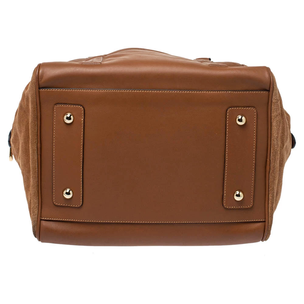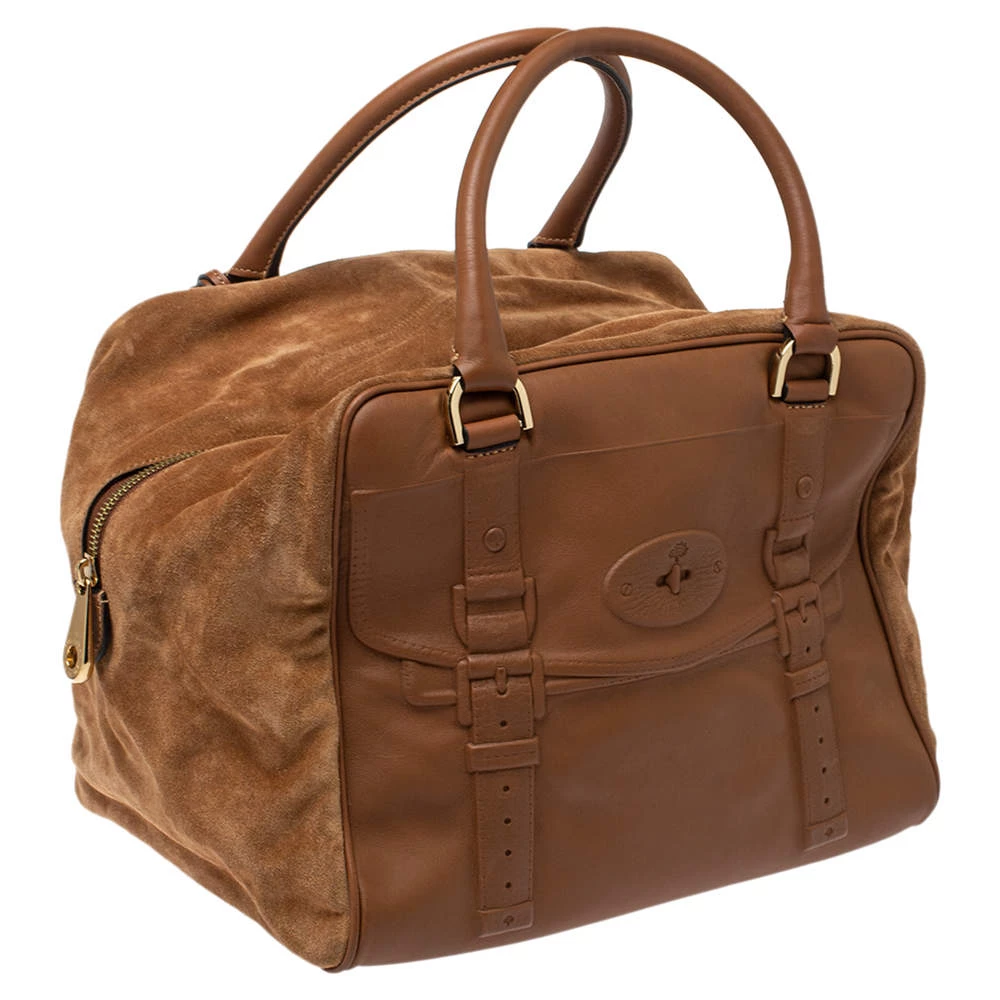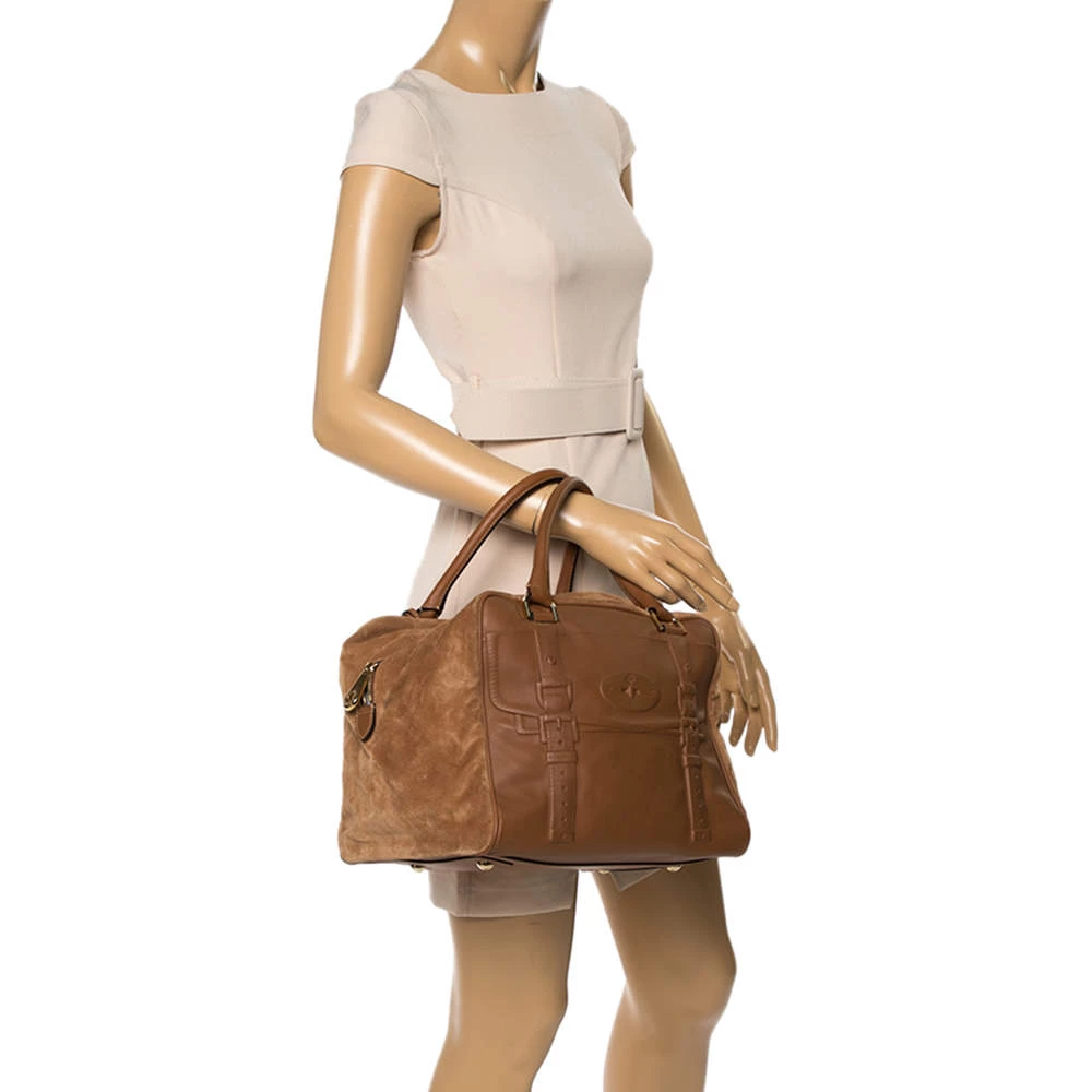 Get yourself this functional and chic Mulberry Maisie Clipper satchel to elevate your style quotient. Available in a graceful brown color, this piece is perfectly sized to hold all your belongings. Fashioned in leather and suede, this piece is sure to put the spotlight on you!