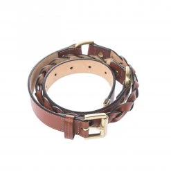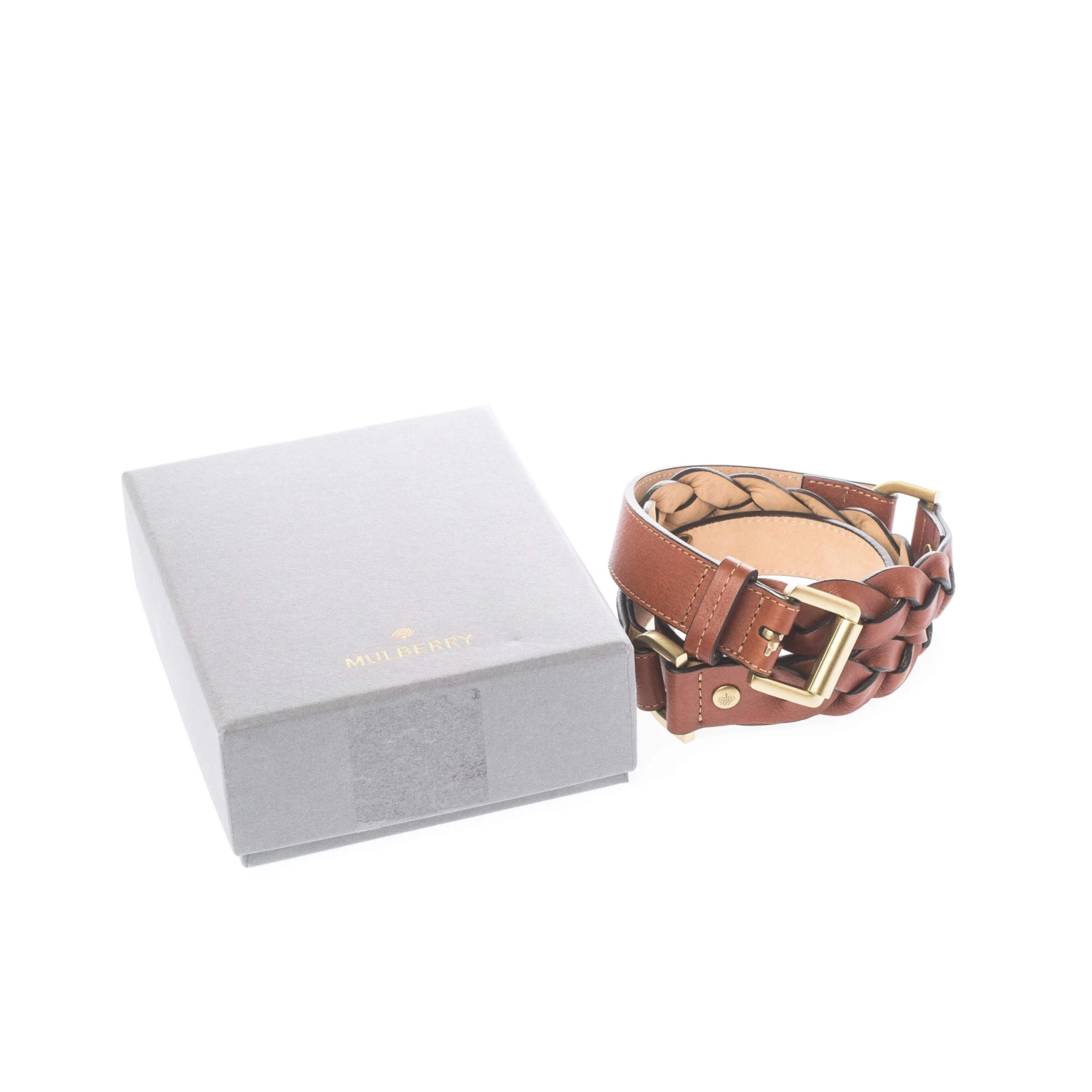 A staple accessory, add this Mulberry belt to your classic collection. This braided belt is crafted from leather carrying a brown hue and is completed with a gold-tone buckle bearing the brand name.