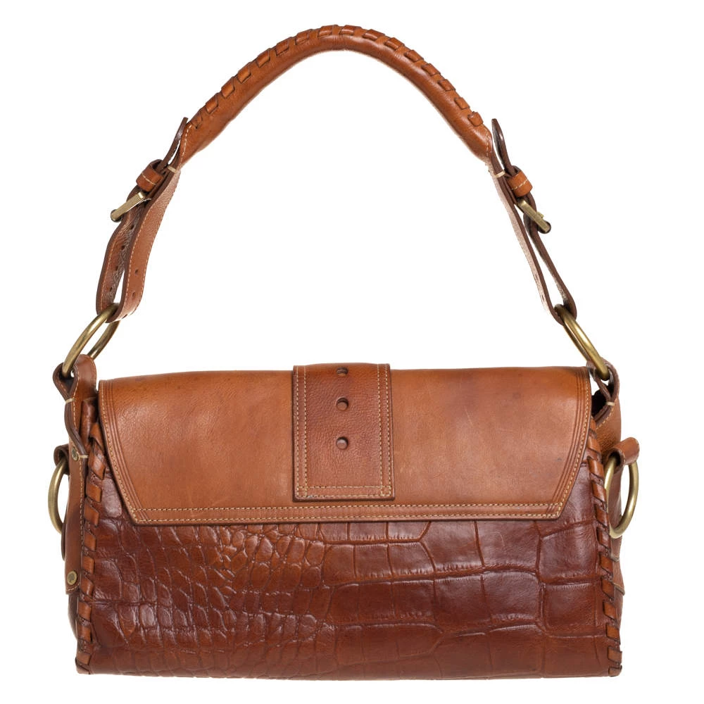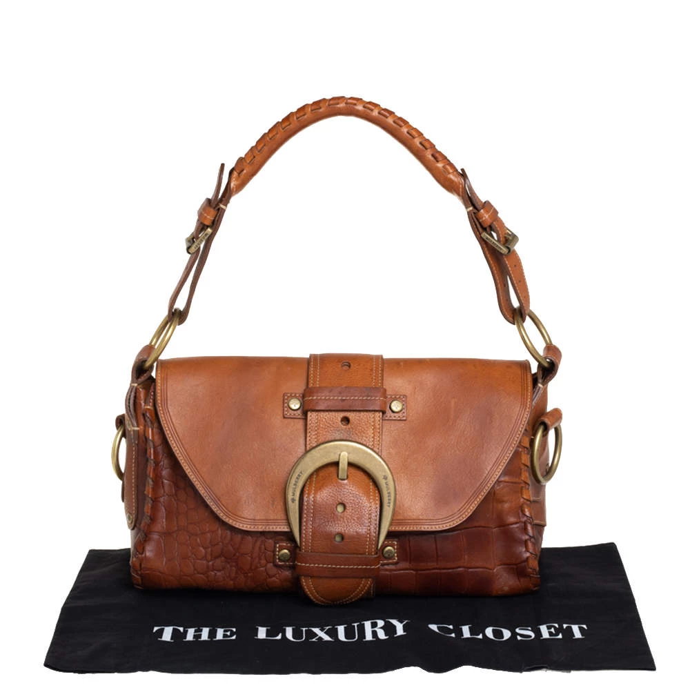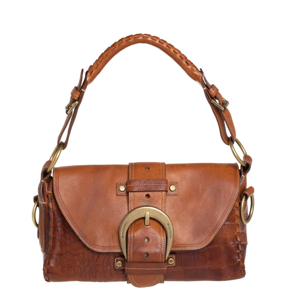 Set your own style quotient by owning this meticulous and stylish bag from Mulberry. It is crafted from leather flaunting a gold-tone buckle detailed flap on the front and equipped with a spacious interior. The brown bag is held by a single adjustable top handle and is one creation that you must get your hands on!
