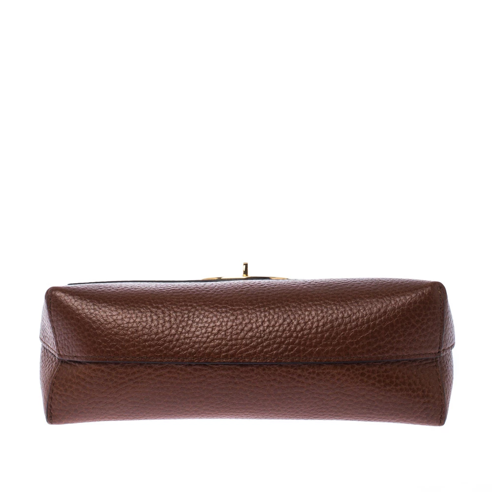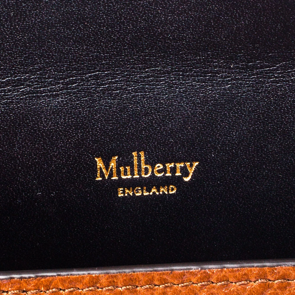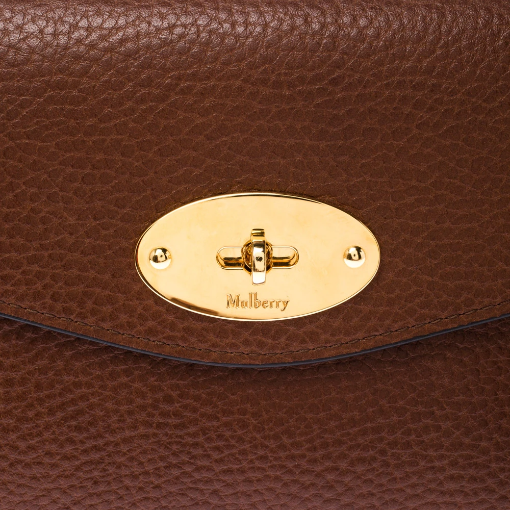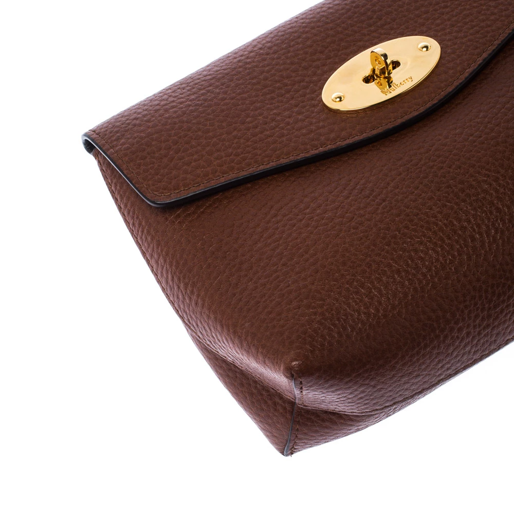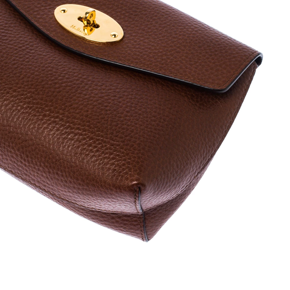 This cosmetic pouch from the house of Mulberry has been expertly crafted from leather and secured with a signature twist lock in gold-tone. It comes with a leather interior that can easily hold your cosmetics. Carry it while travelling to neatly organise your essentials.