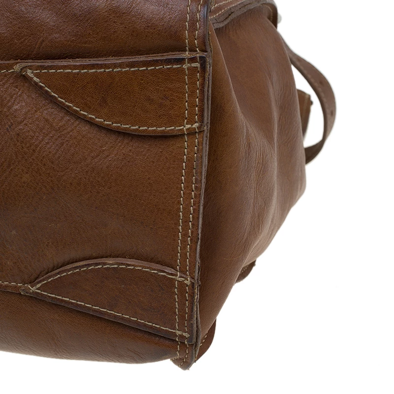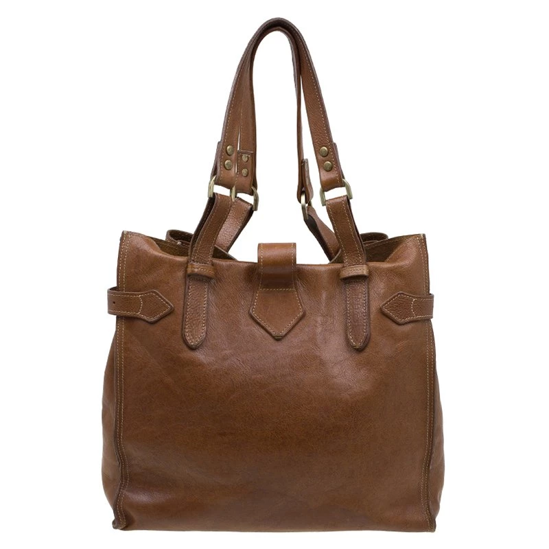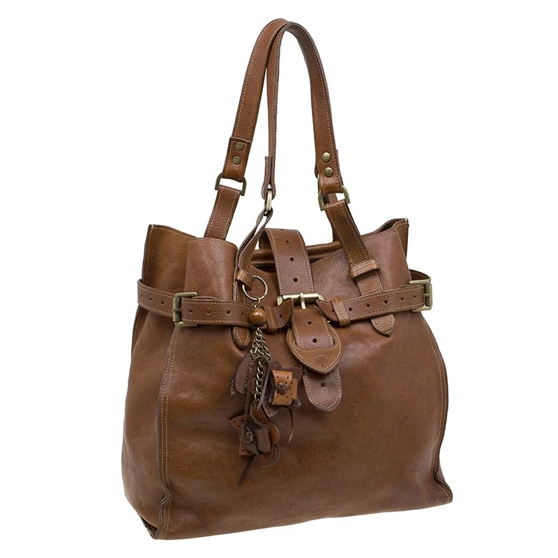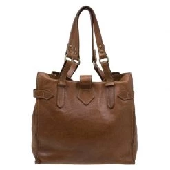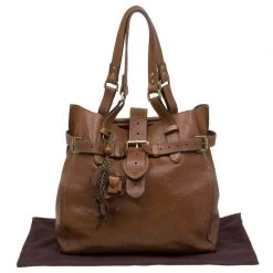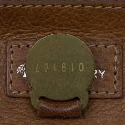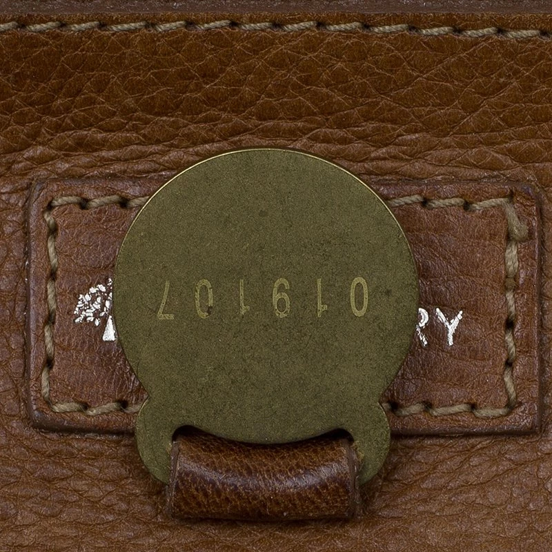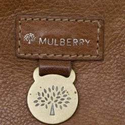 Mulberry’s brown textured-leather tote has one big interior compartment, a zip pocket on the inside and a suede lining will fit all your necessities, making it a key piece for your on-the-go lifestyle. The rustic gold bronzy hardware makes this style instantly recognizable. The top of the bag is secured with a single strap buckle fastening which features the signature mulberry logo and a leather floral charm adorns the front of the bag.