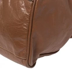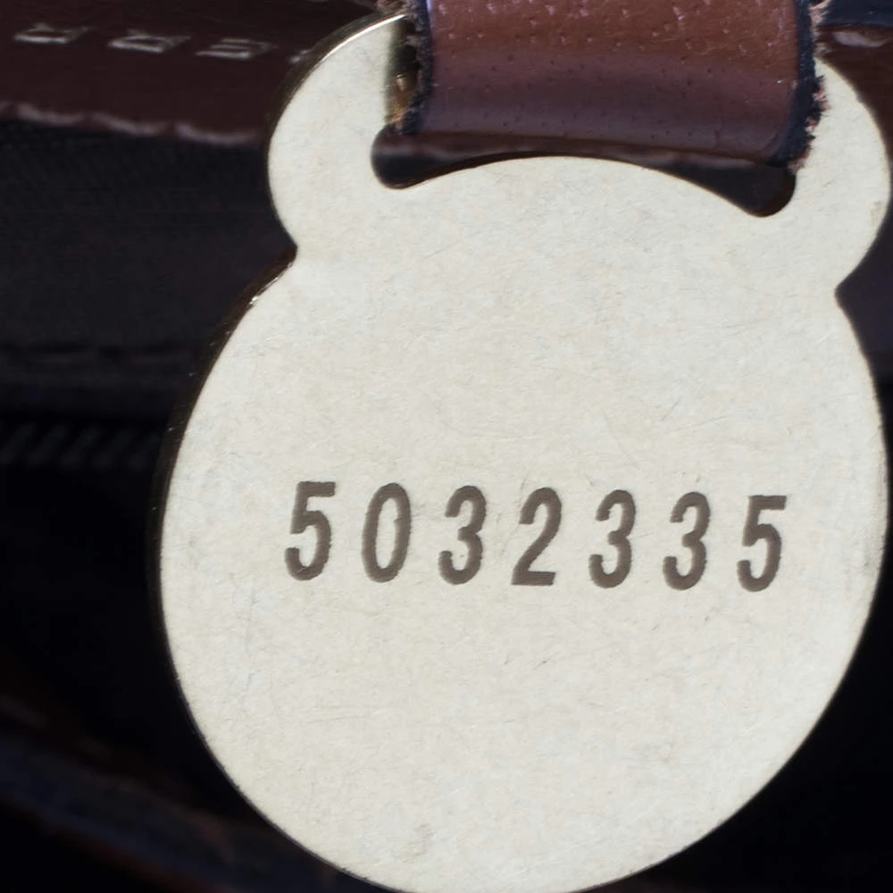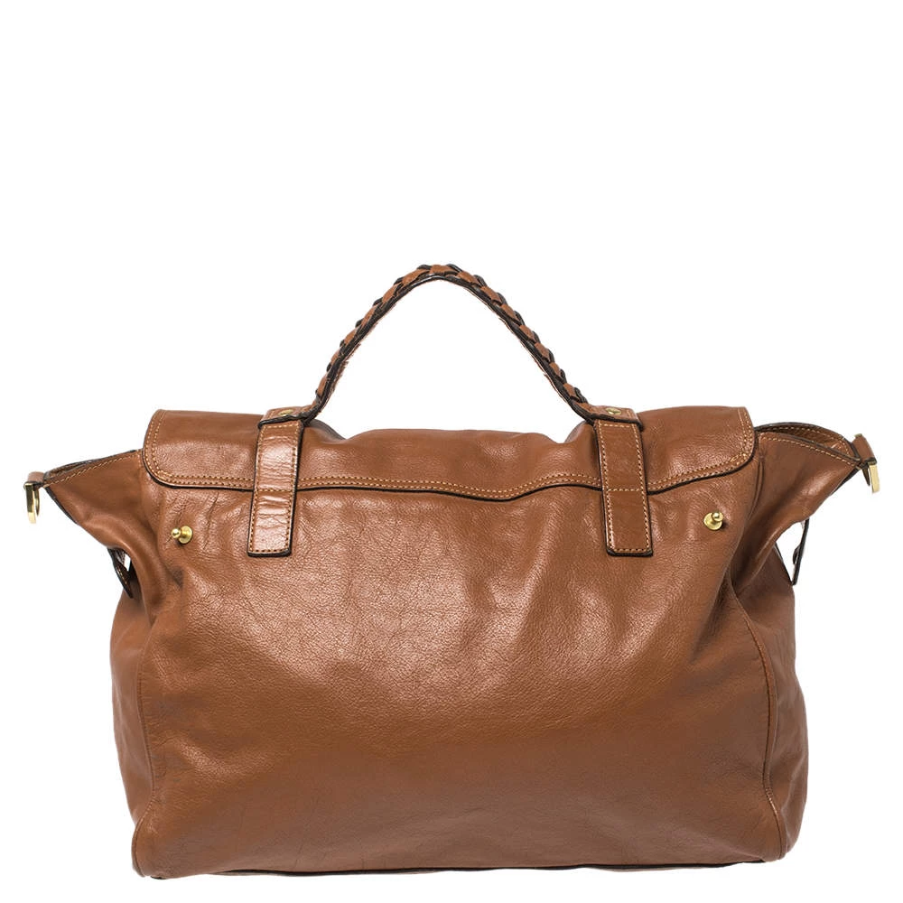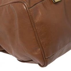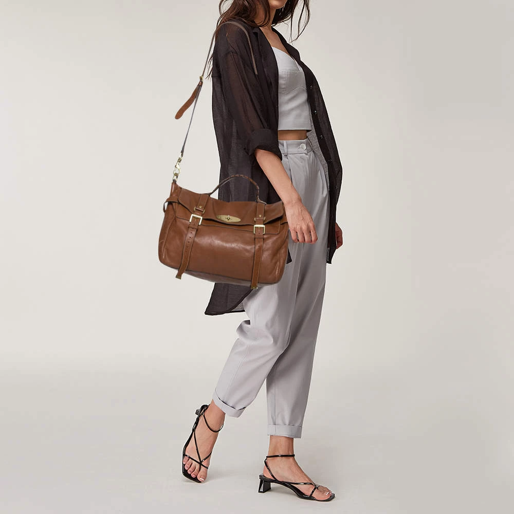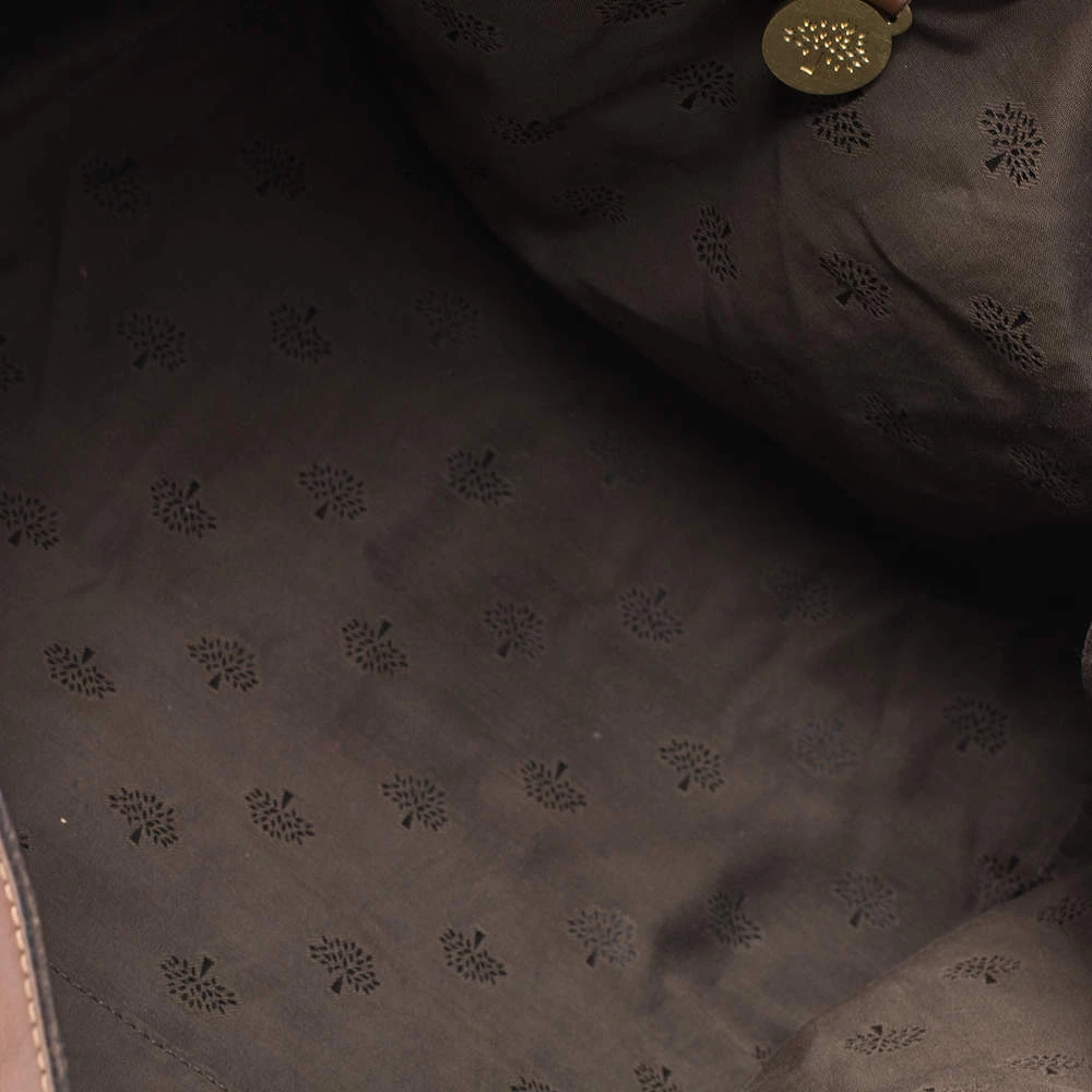 Mulberry brings you this handy bag that will dutifully support you wherever you go. It has been crafted from leather in brown and equipped with a signature twist lock on the flap to secure the spacious fabric interior. It is held by a single handle and a detachable shoulder strap.