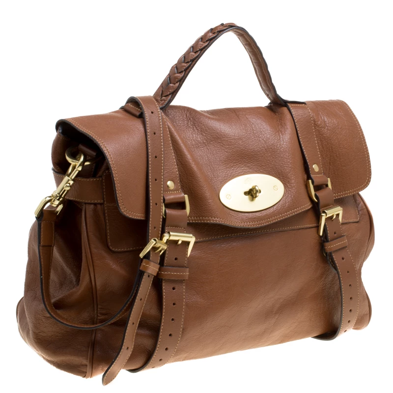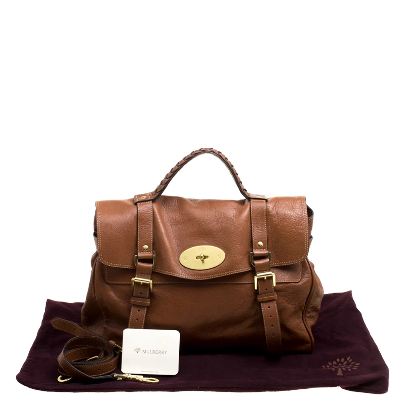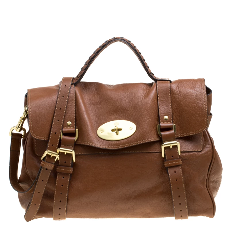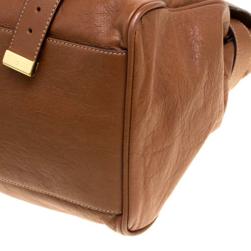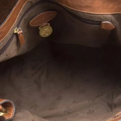 Mulberry brings you this handy bag that will dutifully support you wherever you go. It has been crafted from leather in brown and equipped with a twist lock on the flap that secures a spacious fabric interior capable of holding all your necessities. Lastly, it is held by a single handle and a detachable shoulder strap.