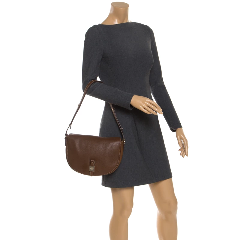 This Mulberry Tessie bag will make a lovely addition to your bag collection. Made from brown leather, it features a full flap at the front with gold-tone logo tab. The spacious interior is lined with fabric and houses a zip pocket. The bag is complete with a handle.
