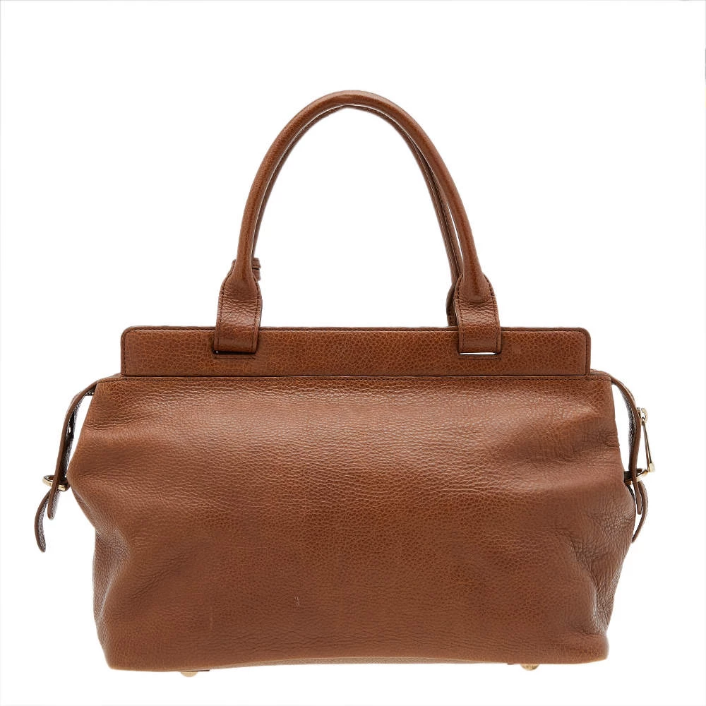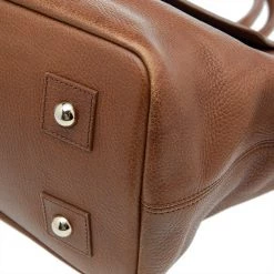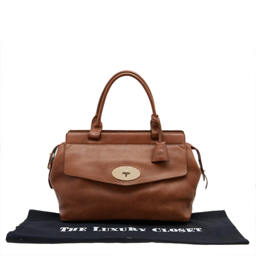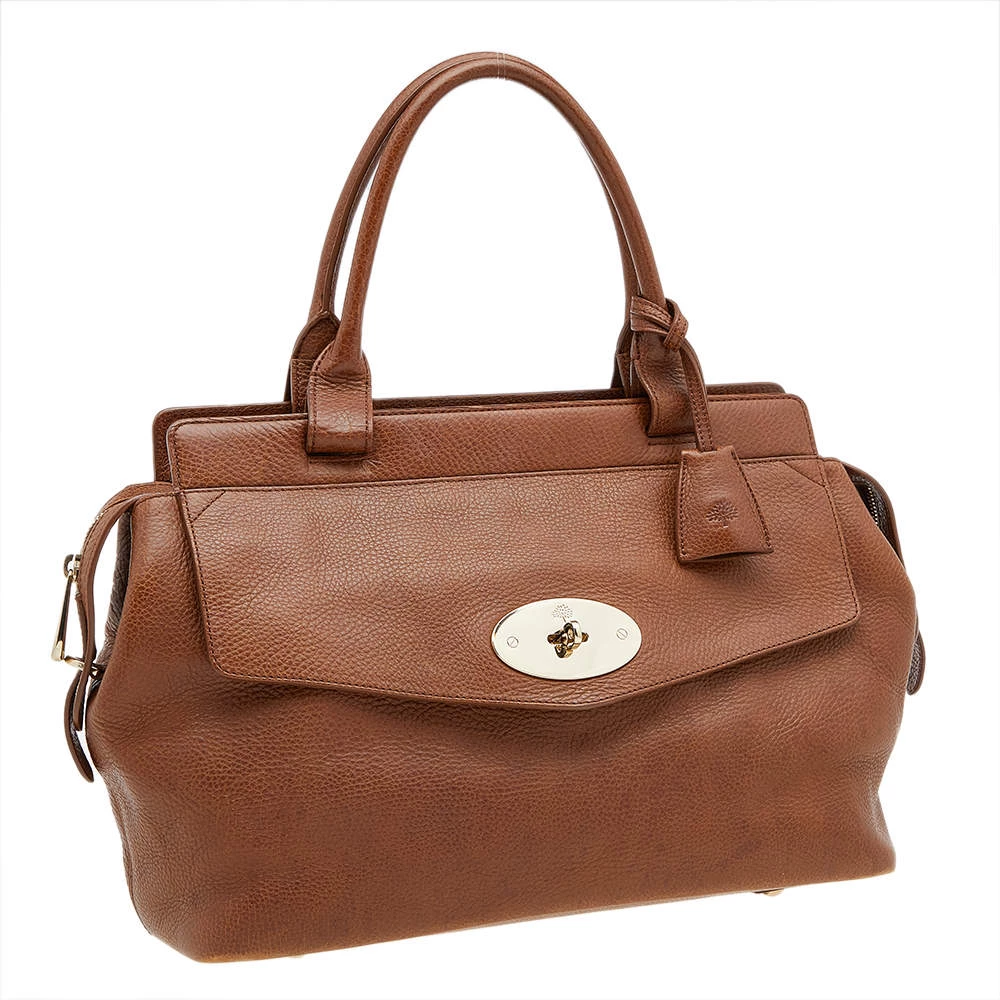 This versatile and practical bag from Mulberry is a must-have. Crafted from brown leather, this feminine bag features gold-tone hardware and a front flap that opens to a fabric-lined interior. Finished with top handles, this bag is easy to parade and is indeed investment-worthy!