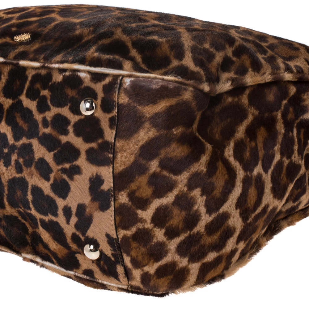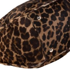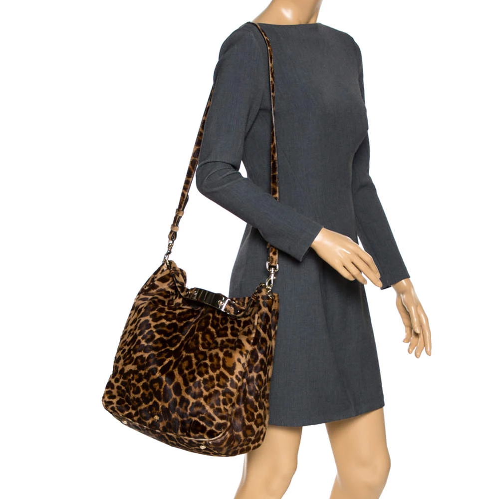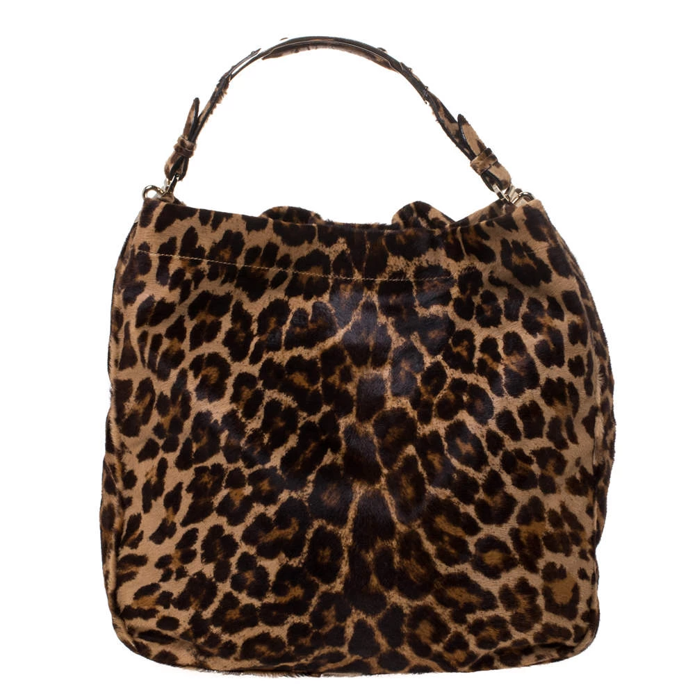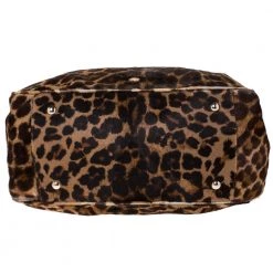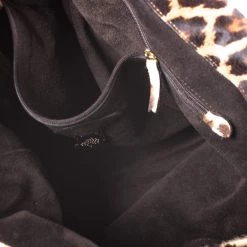 Add some effortless style and luxury to your everyday looks with this stunning Mulberry bag. Crafted in Spain, it is made of exotic calf hair and decorated with a leopard print in the shade of brown all over. It has a lovely silhouette with a slight gathering at the top and the brand logo at the front. It opens to a suede-lined interior with a zip pocket that can store all your essentials. The bag is equipped with a single top handle and a detachable shoulder strap.