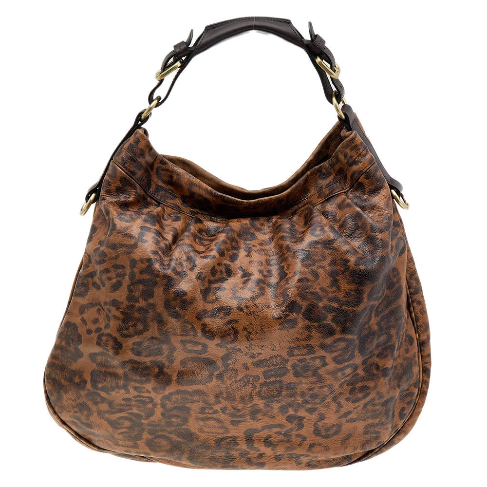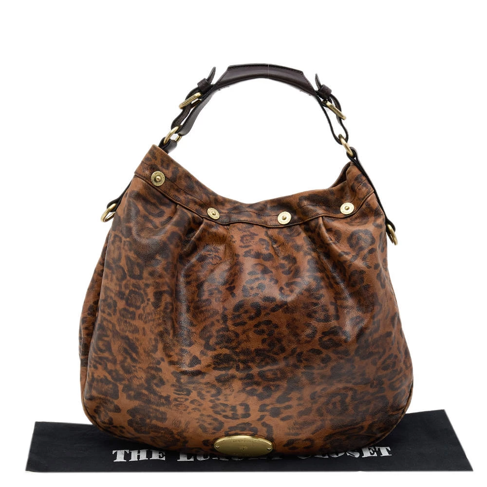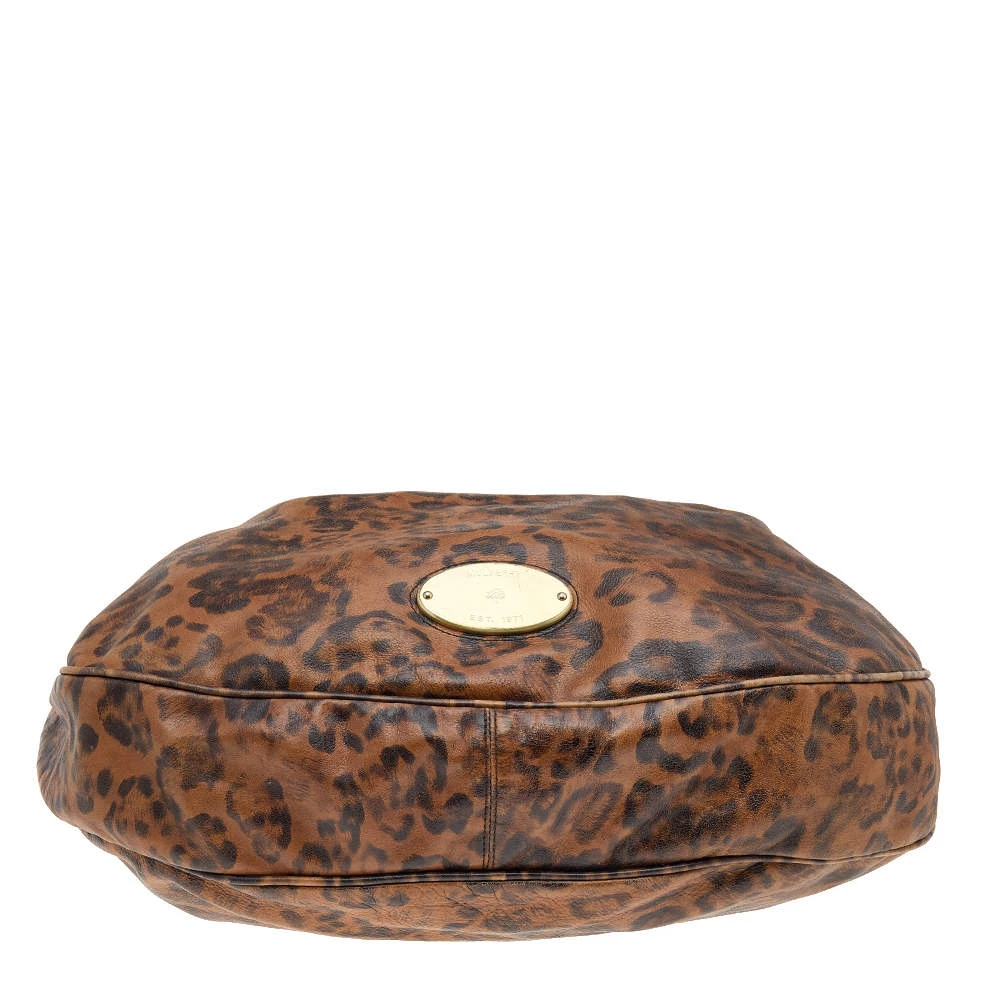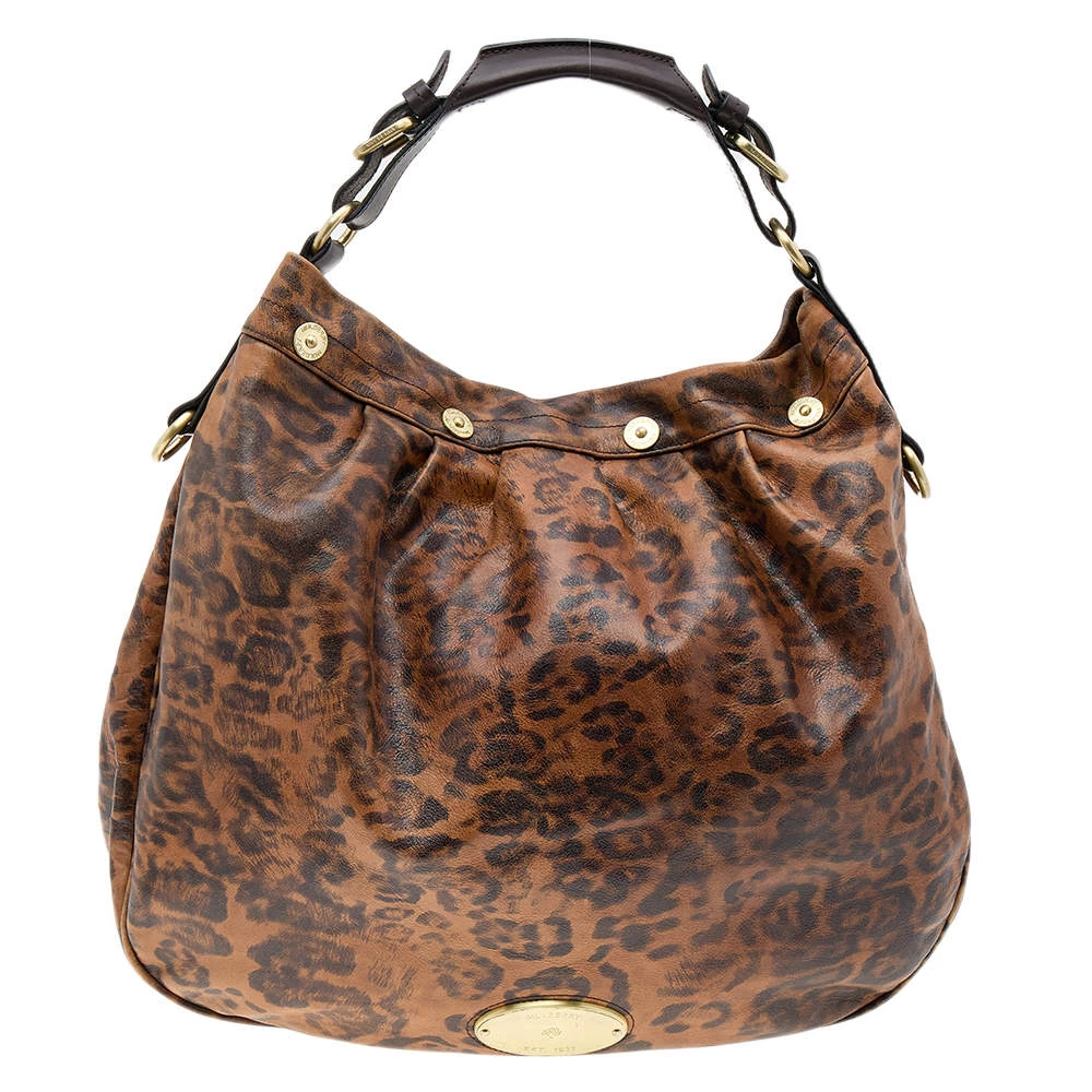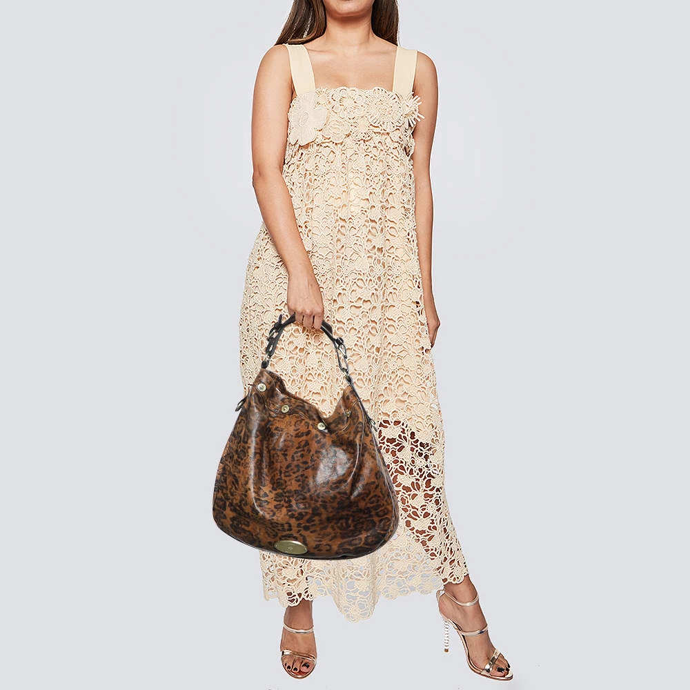 Stunning to look at and durable enough to accompany you wherever you go, this Mulberry hobo is a joy to own! This brown Mitzy is crafted from leopard-printed leather, and styled with a top handle, and a perfectly sized fabric interior to carry your belongings.