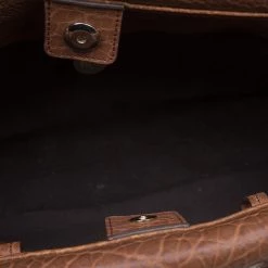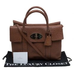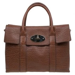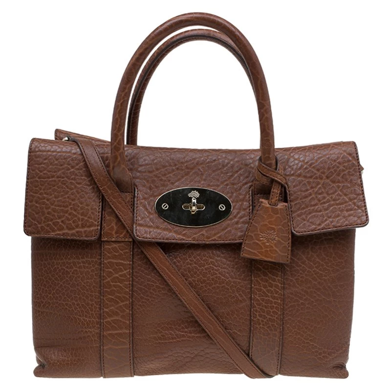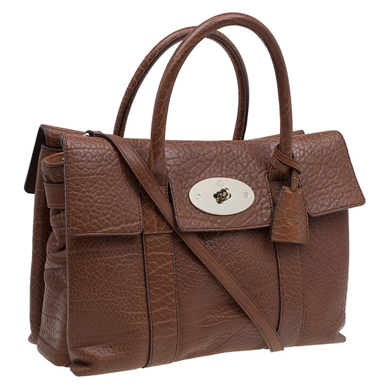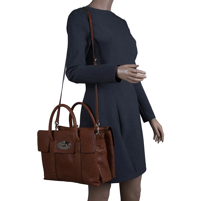 This Bayswater satchel by Mulberry has a classy and sophisticated appearance to it. Crafted from pebbled leather, this brown satchel bag has a two-sided usable front. The open interior can accommodate more than just essentials. Wear yours with a smart formal ensemble.