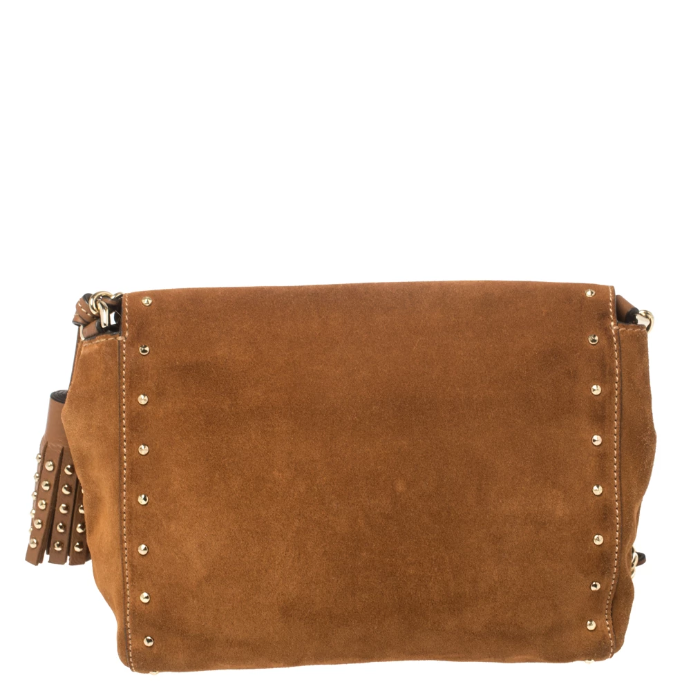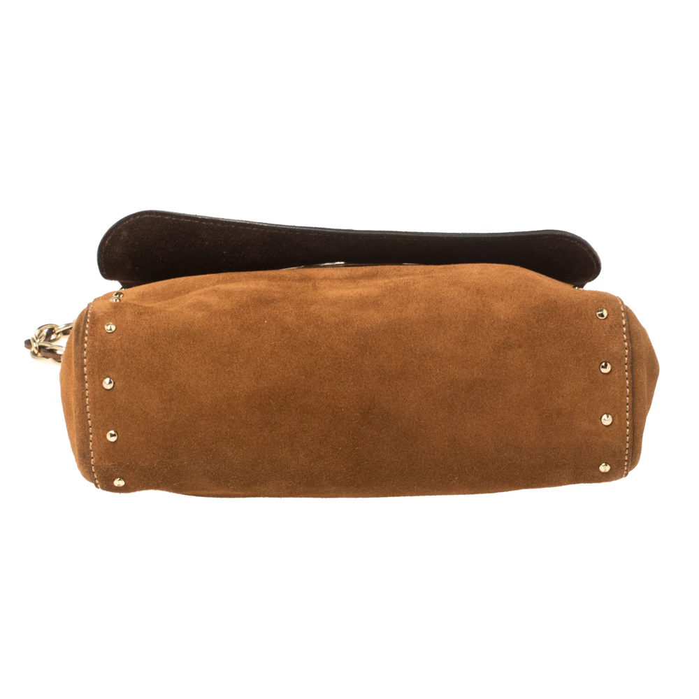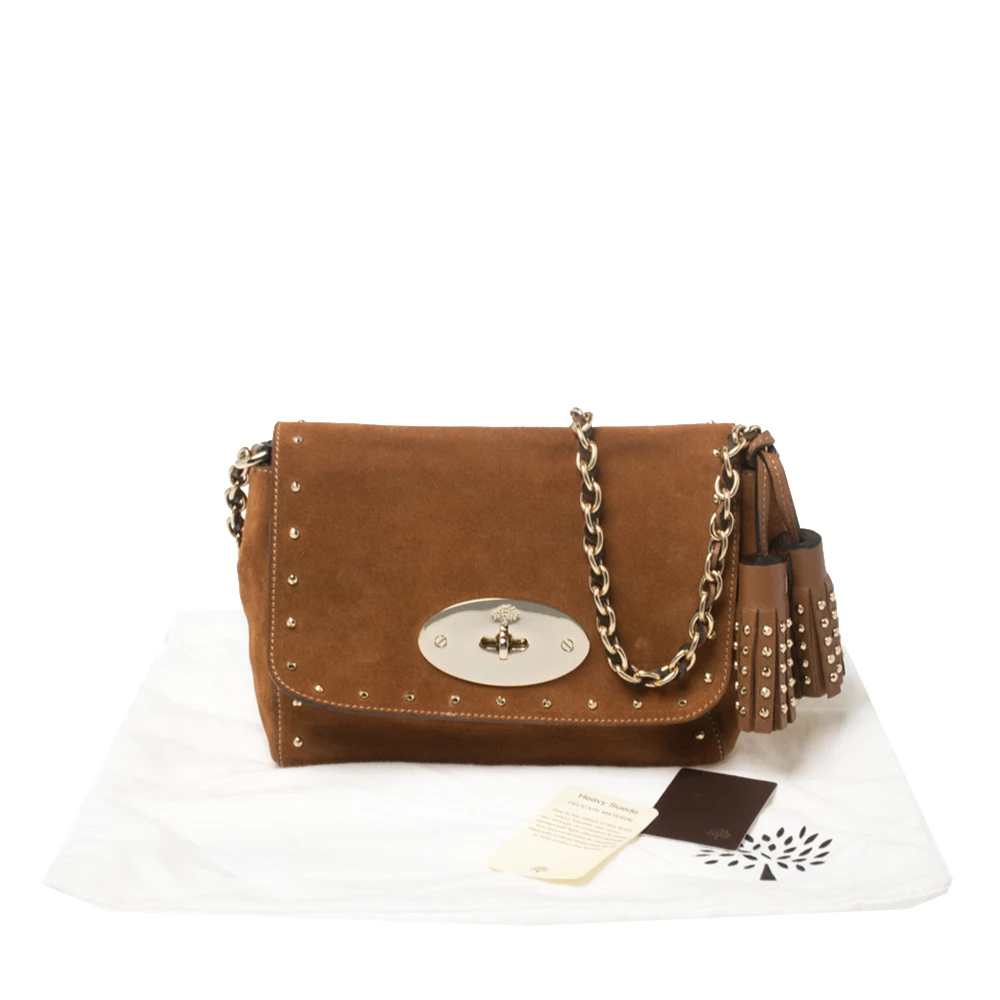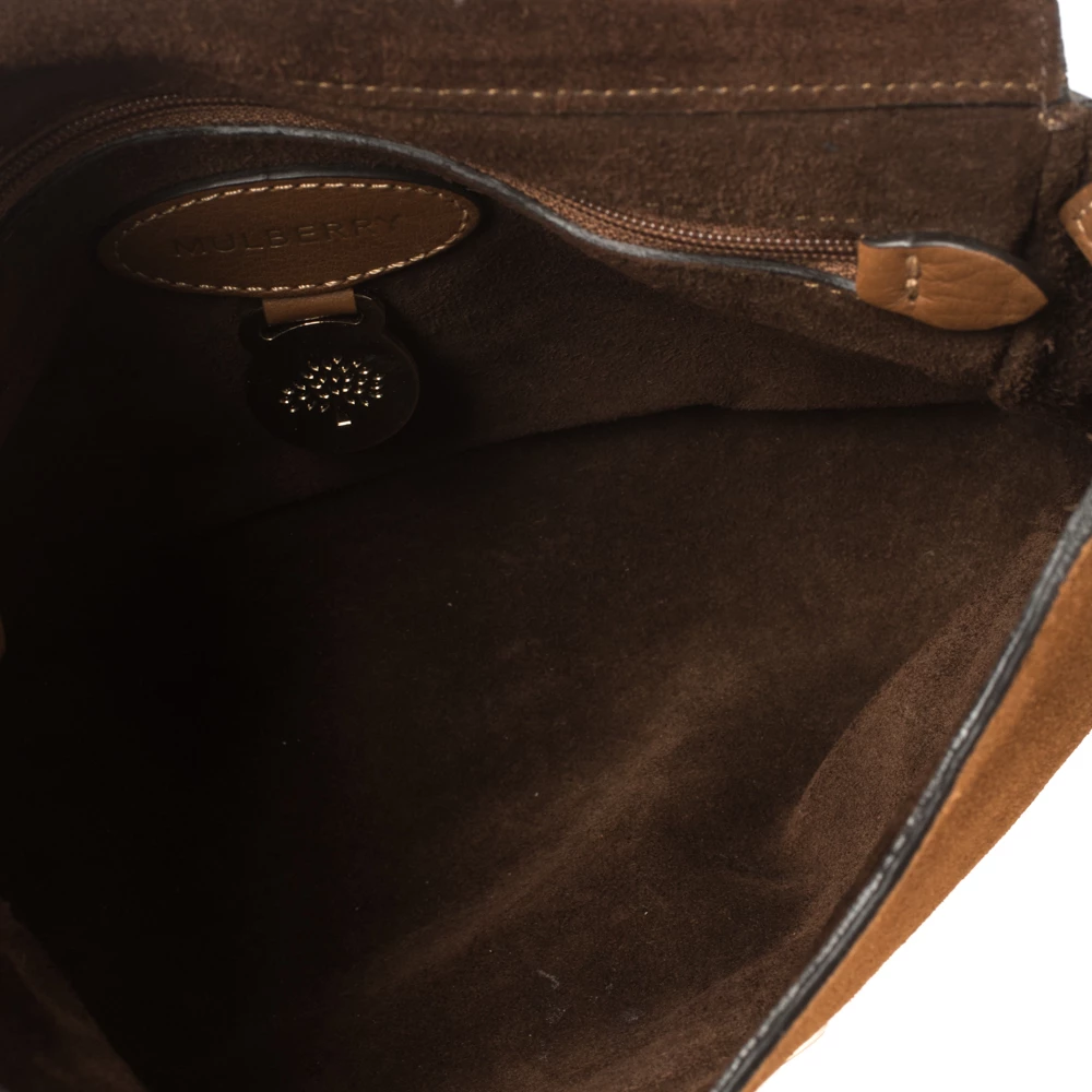 This Mulberry Lily bag is lovely. Crafted from suede, the brown bag comes with a chain and leather woven strap, a postman’s lock on the flap, and a suede-lined interior. It is ideal for everyday use.