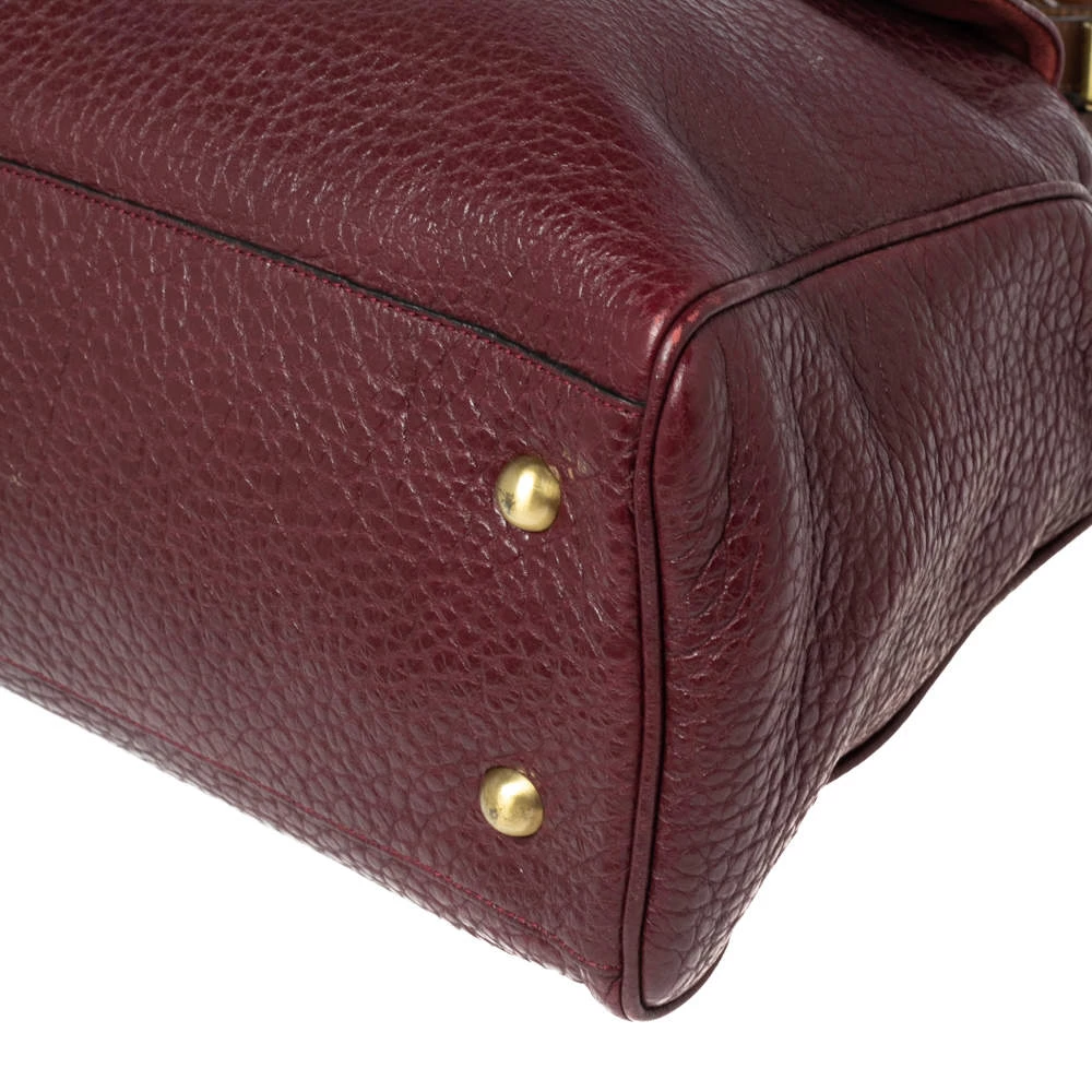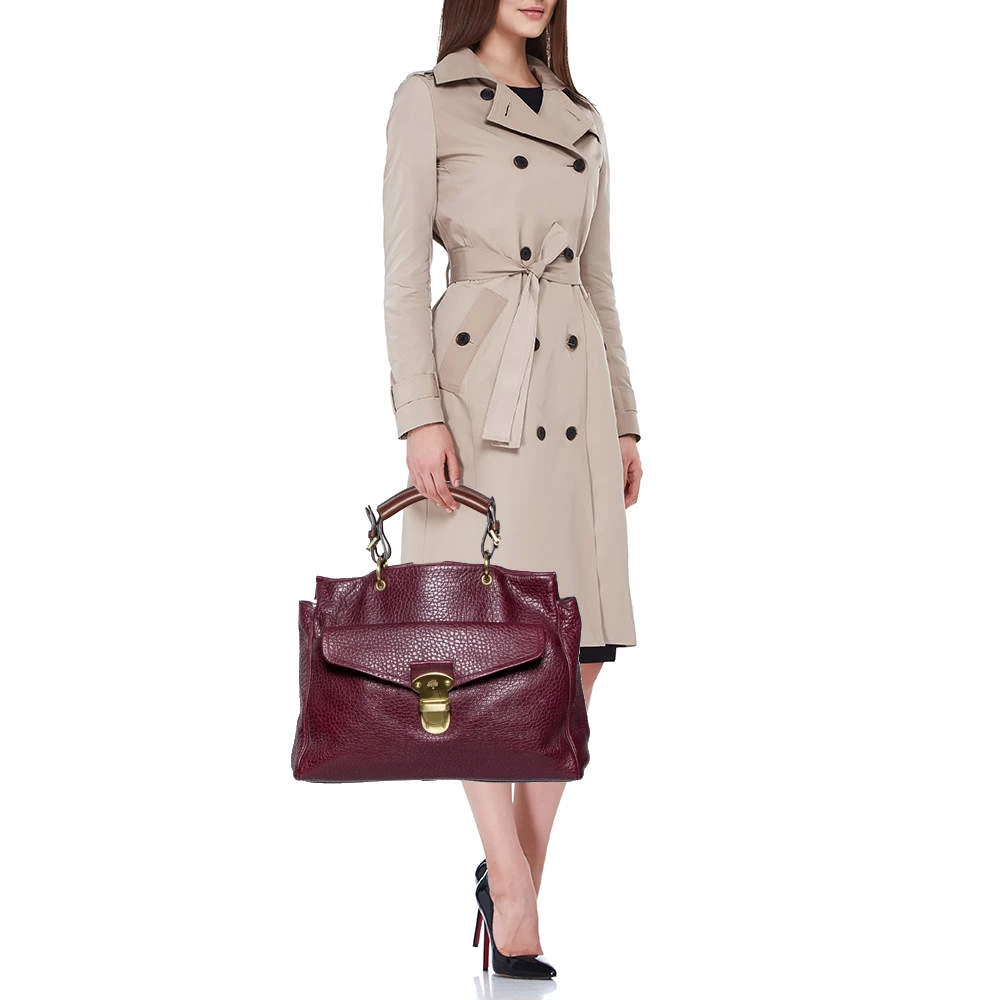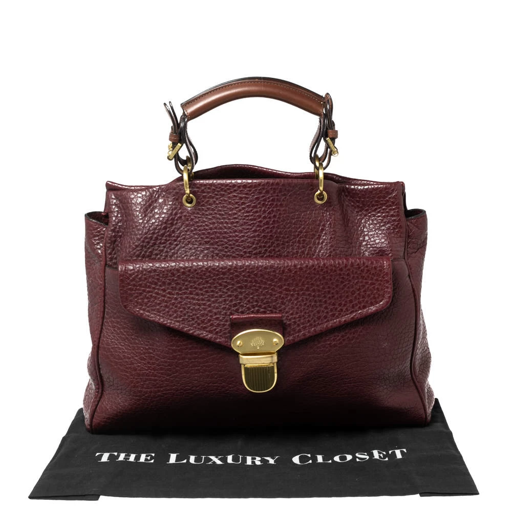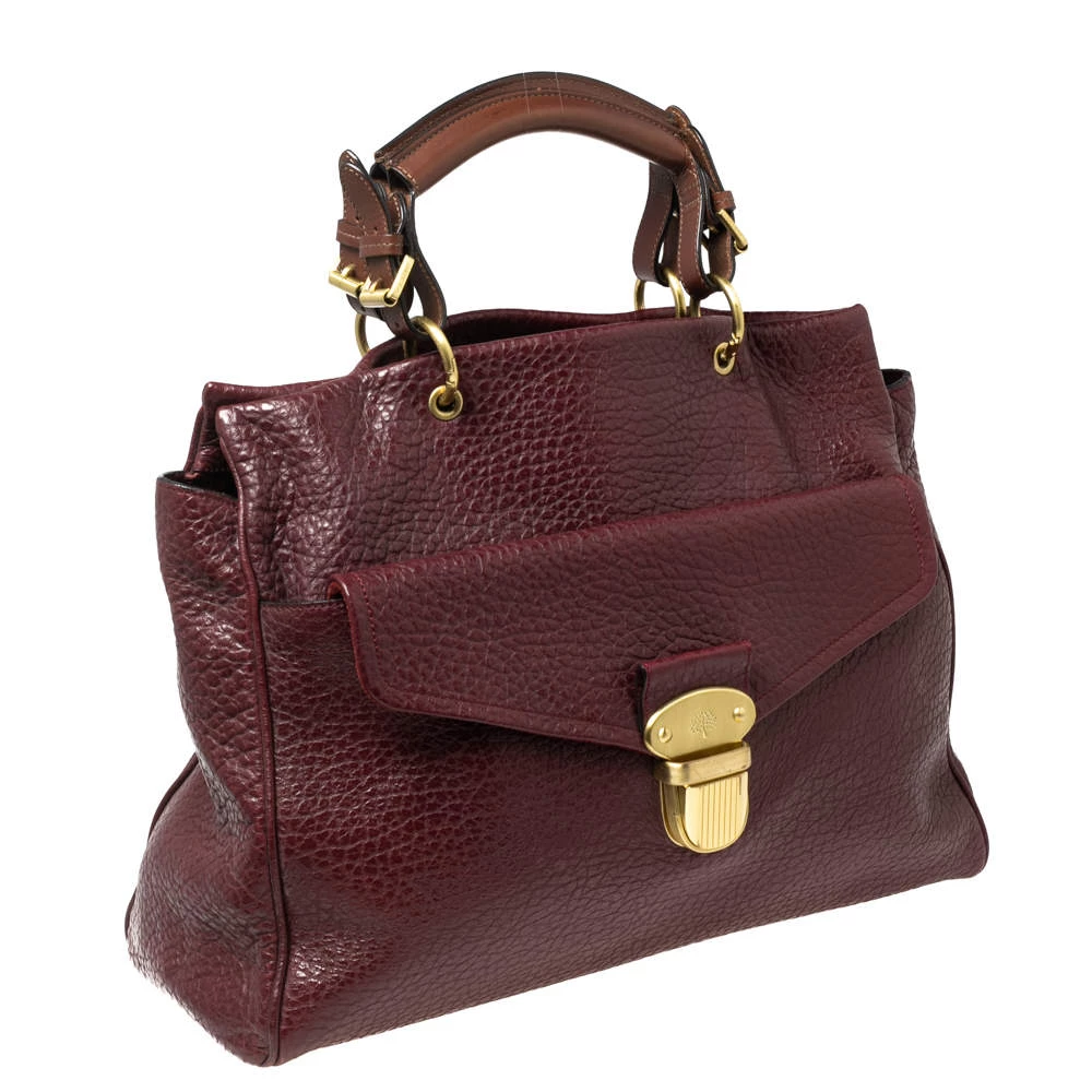Designed with grained leather, this Polly tote is a reliable accessory. The fabric-lined interior of this handbag will keep your essentials safe. This elegant handbag is equipped with a front flap pocket and top handles. Elegant and classy, this Mulberry bag will be a great choice for work or travel.