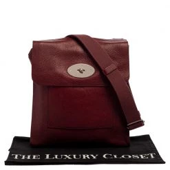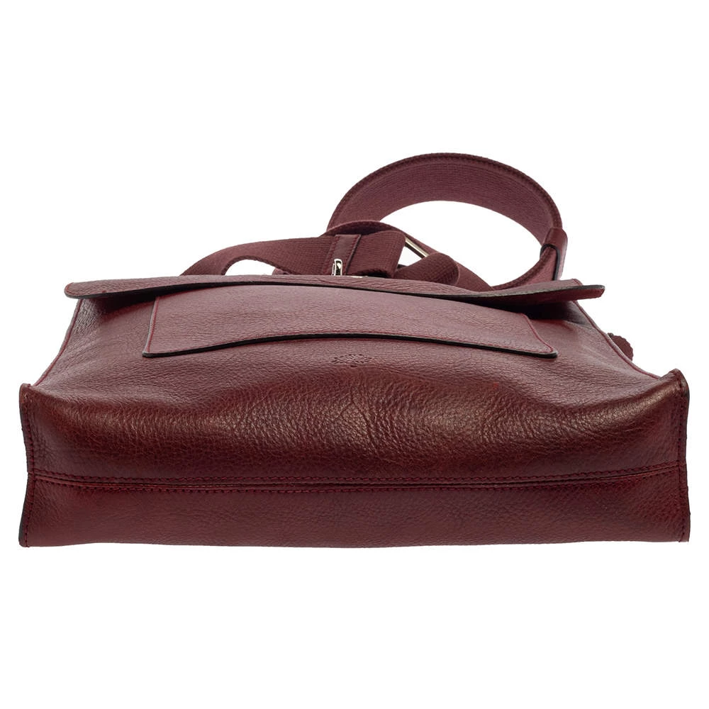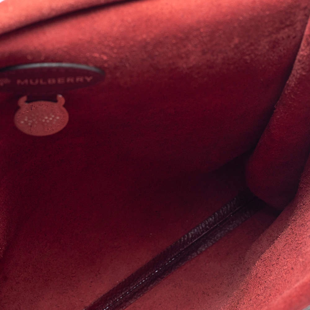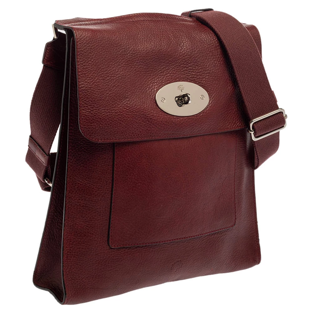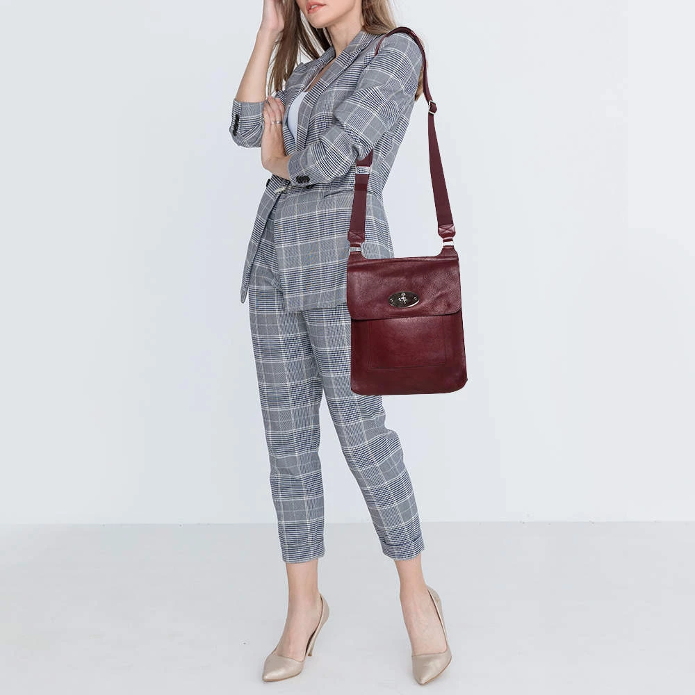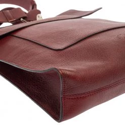 A blend of style and practicality, this burgundy messenger bag from Mulberry will get compliments pouring in! It has been crafted from leather and designed with the signature clasp on the front flap. It opens to a suede-lined interior that can accommodate your daily essentials with ease. The bag is complete with an adjustable shoulder strap and the silver-tone hardware adds to its chic appeal.