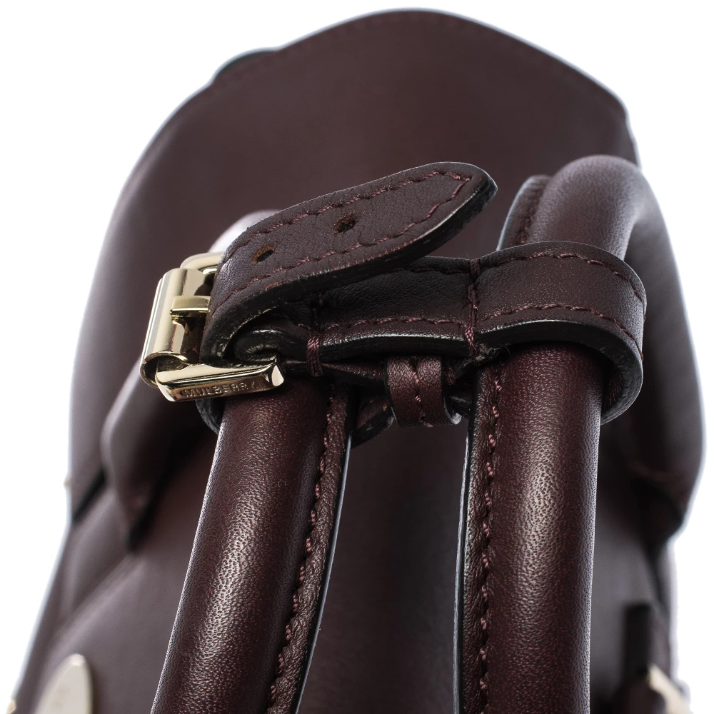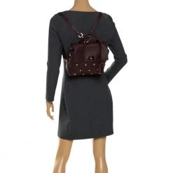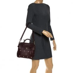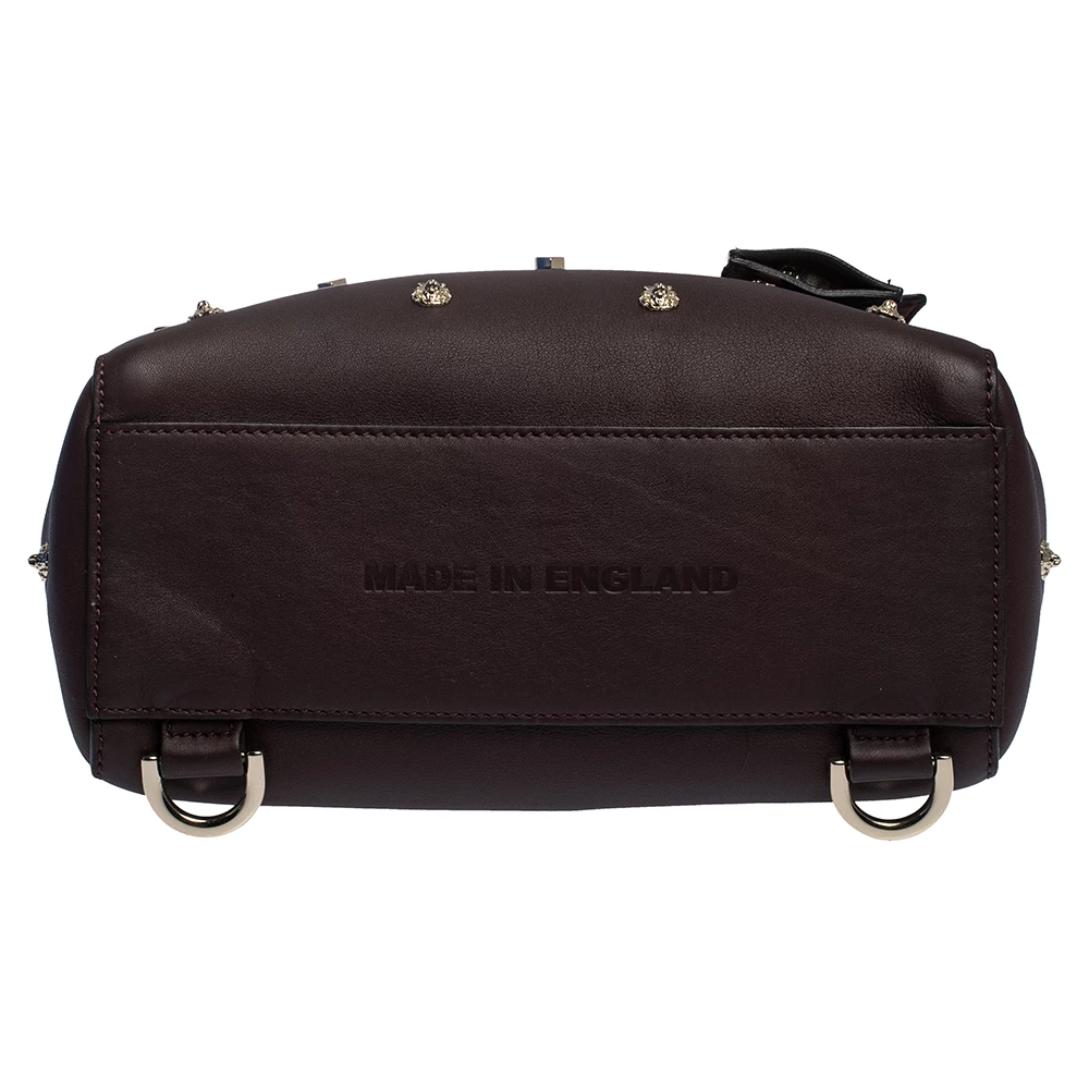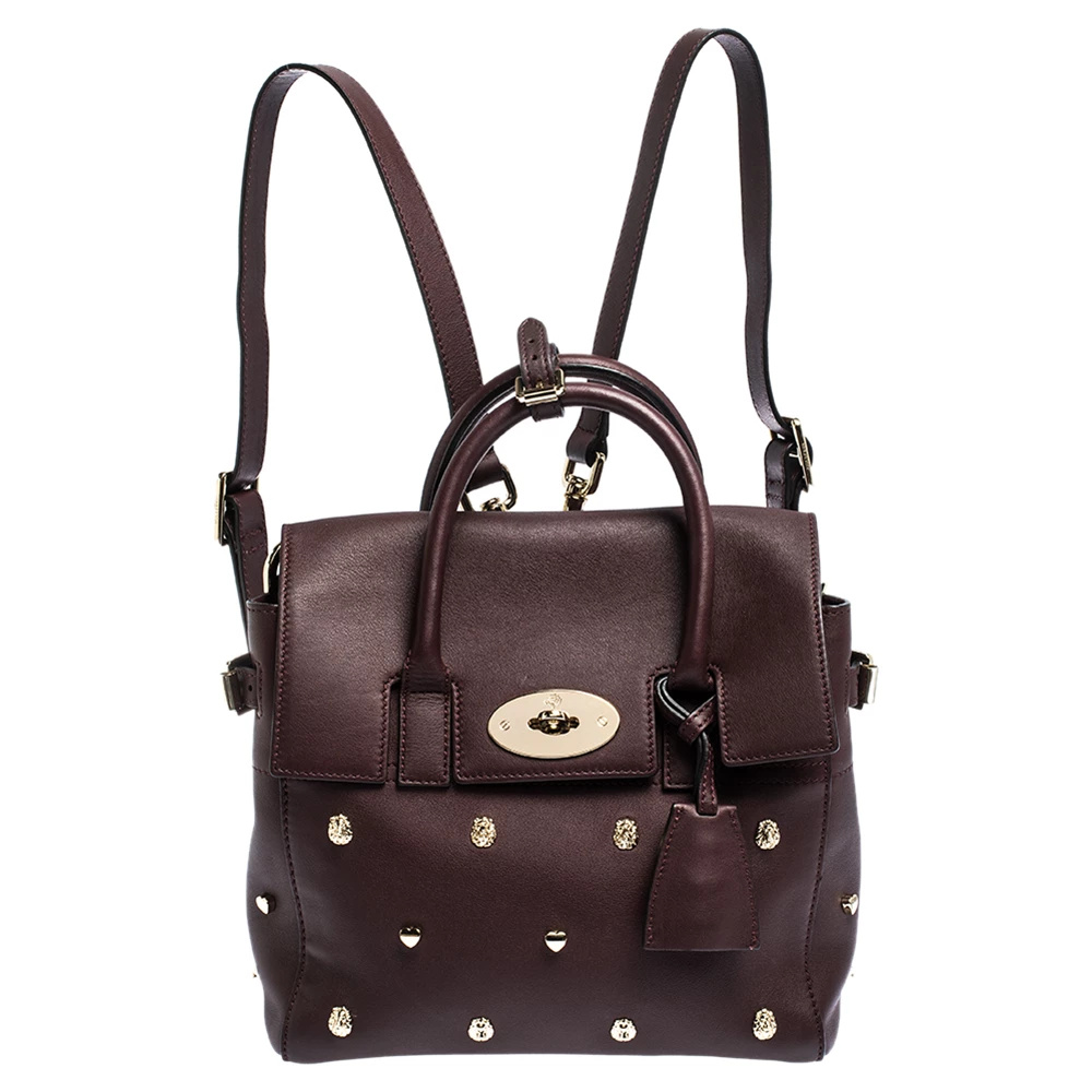 This stylish Cara Delefigne convertible satchel comes from the house of Mulberry. Crafted meticulously from quality leather, it comes in a lovely shade of burgundy. It has been styled with dual handles, a studded exterior, a front flap with a turn-lock closure that opens to a suede interior. It has a strap that can be used to carry it as a shoulder bag as well as a backpack. Grab this masterpiece now!
